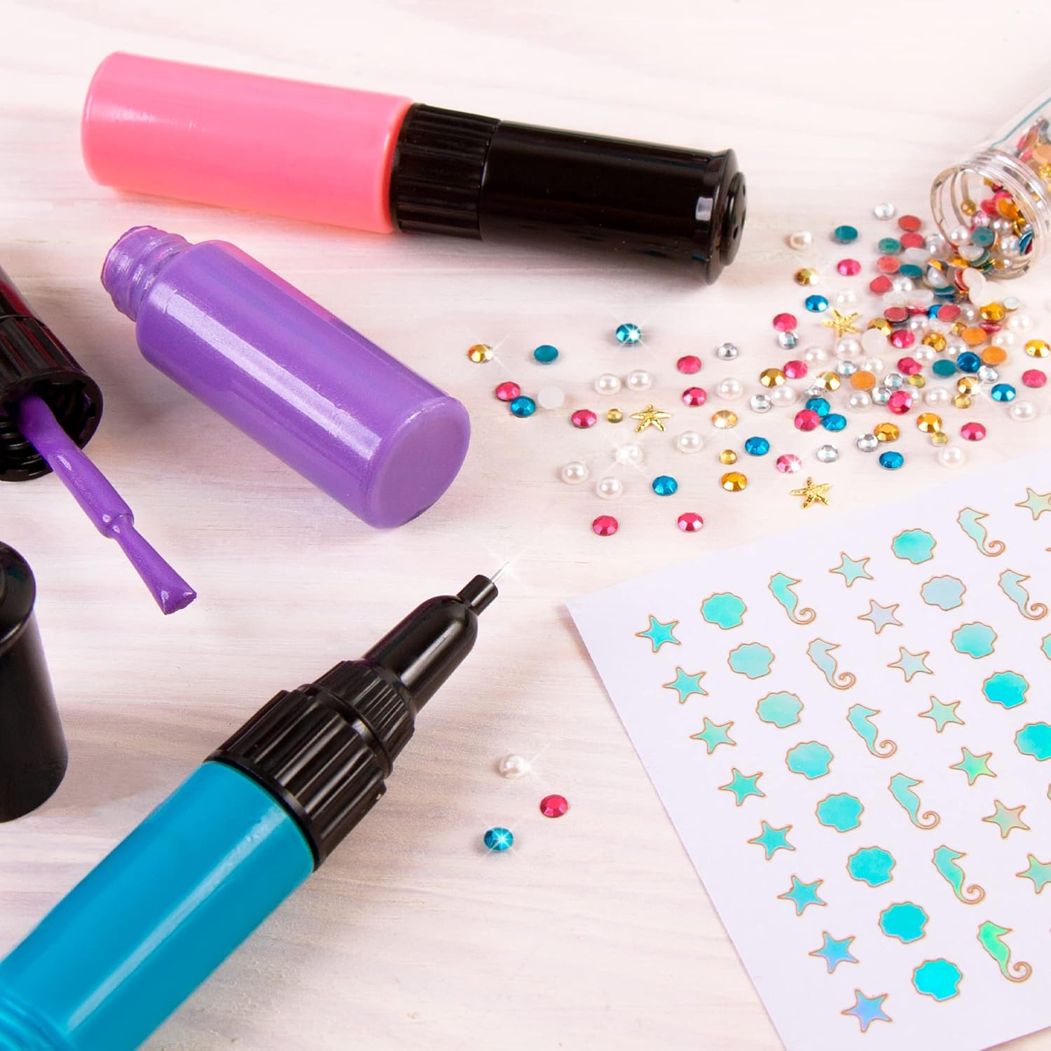 SET DI MANICURE CON BRILLANTINI DELLA SIRENETTA Realizza una manicure perfetta in pochi minuti con questo set ispirato alla Sirenetta con inclusi smalti coloratissimi, penne, adesivi e molto altro. AIUTA I BAMBINI A SVILUPPARE COMPETENZE UTILI NEL MONDO REALE. Questo set insegna ai bambini in modo divertente a sviluppare la fantasia, la comunicazione, la concentrazione, il coordinamento mani-occhi e il pensiero logico. E, non meno importante, stimola i bambini a relazionarsi fra loro con delle attività del mondo reale piuttosto che con i videogiochi. TUTTI I PEZZI INCLUSI. Questo set di manicure ispirato alla Sirenetta include tutto il necessario per una manicure coloratissima e luminosa proprio come quella di una sirena. Il set include smalti in penna, decorazioni e adesivi per unghie e molto altro! UNA SPLENDIDA IDEA REGALO. I giochi per lo sviluppo dei bambini di Make It Real sono l’idea regalo perfetta poiché permettono loro di sviluppare le competenze di apprendimento grazie a cui avranno successo da grandi mentre si divertono giocando. ADATTO DAGLI 8 ANNI IN SU. Tutti i componenti sono atossici e si lavano via facilmente dalla pelle e dai vestiti.
