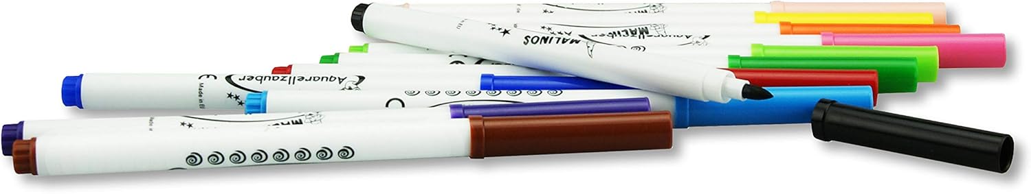 12 pennarelli colorati con effetto acquerello per un divertimento di lunga durata Come per magia si creano splendide dipinti ad acquerello Colori meravigliosi grazie all'elevata densità di pigmenti Rimuovere dalla pelle con sapone e acqua, lavabile a 40 °C con la maggior parte dei tessuti Prodotto nell'Unione Europea