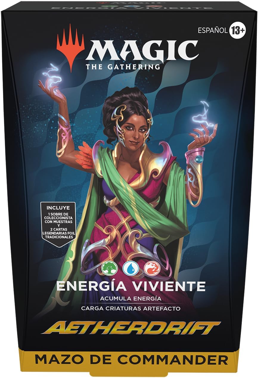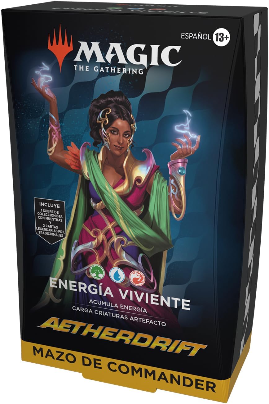 Pronto? Pronto ? Per ricaricare. Unisciti all'incredibile artigiano Saheeli per accumulare energia, quindi carica le tue creature artefatto per completare il più grande con questo mazzo Commander rosso-verde-blu di Aetherdrift 2 BORDERLESS FOIL COMMANDERS - Ogni mazzo Commander di Aetherdrift contiene 2 tradizionali carte creatura leggendaria foil con grafica senza bordi. Inserisci 10 carte da pranzo: ogni mazzo include 10 nuovissime carte di Magic: The Gathering COLLEZIONA CARTE CON TRATTAMENTI SPECIALI - Ogni mazzo include anche una carta da collezione busta con 2 carte campione Aetherdrift con bordo alternativo BATTAGLIE ECCELLENTI PER PIÙ GIOCATORI: Commander è una modalità per godersi Magic multiplayer, un'epica battaglia campale piena di strategia e intrighi sociali Contenuto: 1 mazzo Commander Aetherdrift MTG Living Energy, pronto per giocare (100 carte), 1 busta da collezione con 2 carte campione, 10 gettoni fronte-retro e 1 scatola di immagazzinaggio