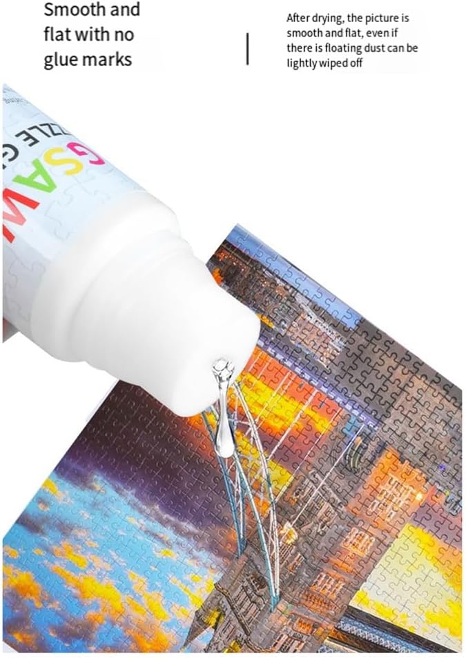 Facile da usare: aggiorna il design multi in con una spugna. L'adesivo del puzzle viene applicato direttamente bottiglia con una spugna erogatrice superficie 'immagine, distribuito uniformemente per asciugarlo, e poi riutilizzato sul retro. (Nota: si applica con una punta di spugna, prestare attenzione a consentire alla colla di penetrare negli spazi vuoti, il che può rendere il puzzle più . [Grande capacità] Con una grande capacità, i pezzi del puzzle possono essere incollati per evitare sprechi di colla. Dopo applicato l'adesivo, il tuo puzzle/puzzle sarà più forte, più liscio e più brillante. La nostra colla non lascia segni ed è antianimale e antiossidante. Si consiglia di asciugare la colla per 1-2 ore e determinare la situazione reale in un momento tempo specifico in base al puzzle). [Colla per puzzle di sicurezza] Alta qualità, 100% non tossico e conforme ai test di sicurezza internazionali. 100% atossico, ecologico e a base d'acqua, sicuro per gli adulti che per i bambini. La colla viene utilizzata per un'ampia gamma di applicazioni. Questa colla per puzzle è chiaramente molto adatta per la maggior parte dei materiali, come puzzle di carta, legno, libri, immagini e disegni con diamanti. Allo stesso tempo, la colla per puzzle può conservare e riparare in modo permanente i puzzle assemblati e poi appenderli al muro come elementi decorativi, rendendola una scelta importante per le attività manuali in famiglia.