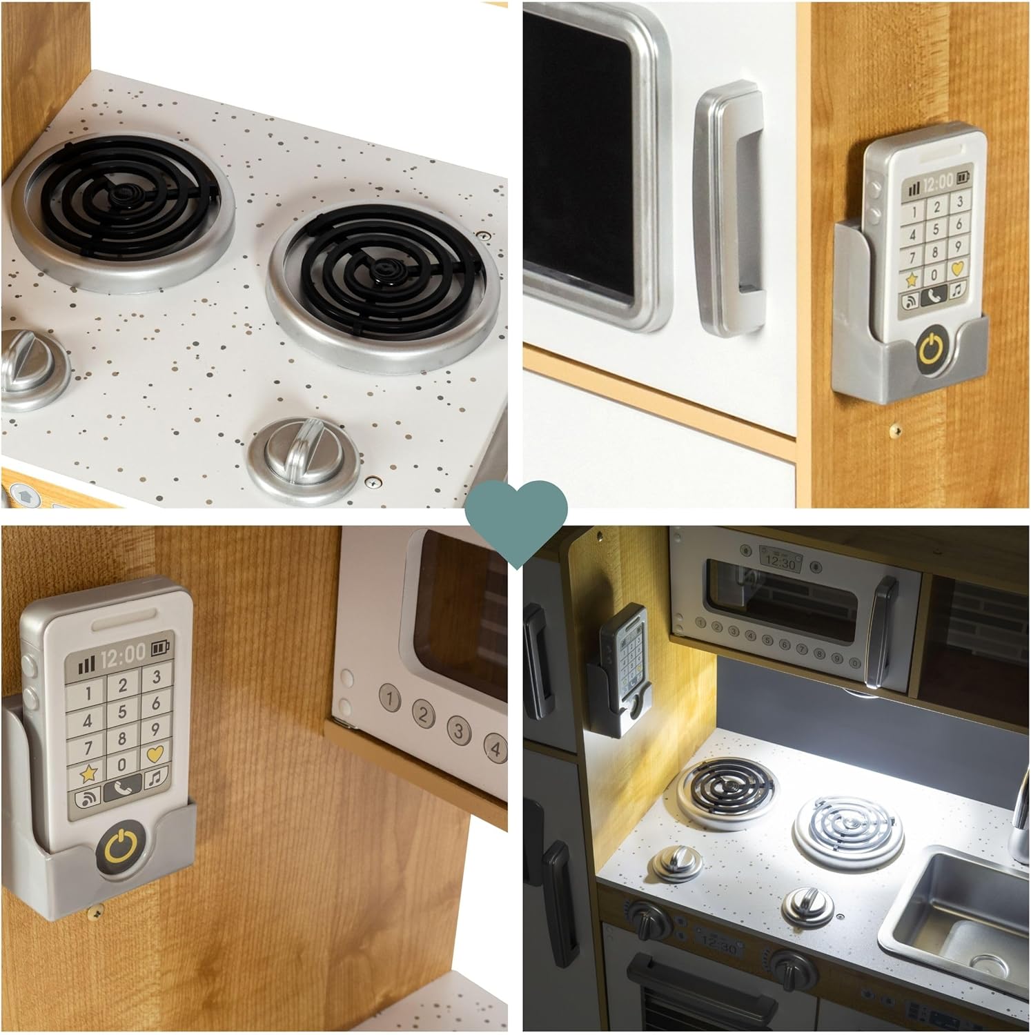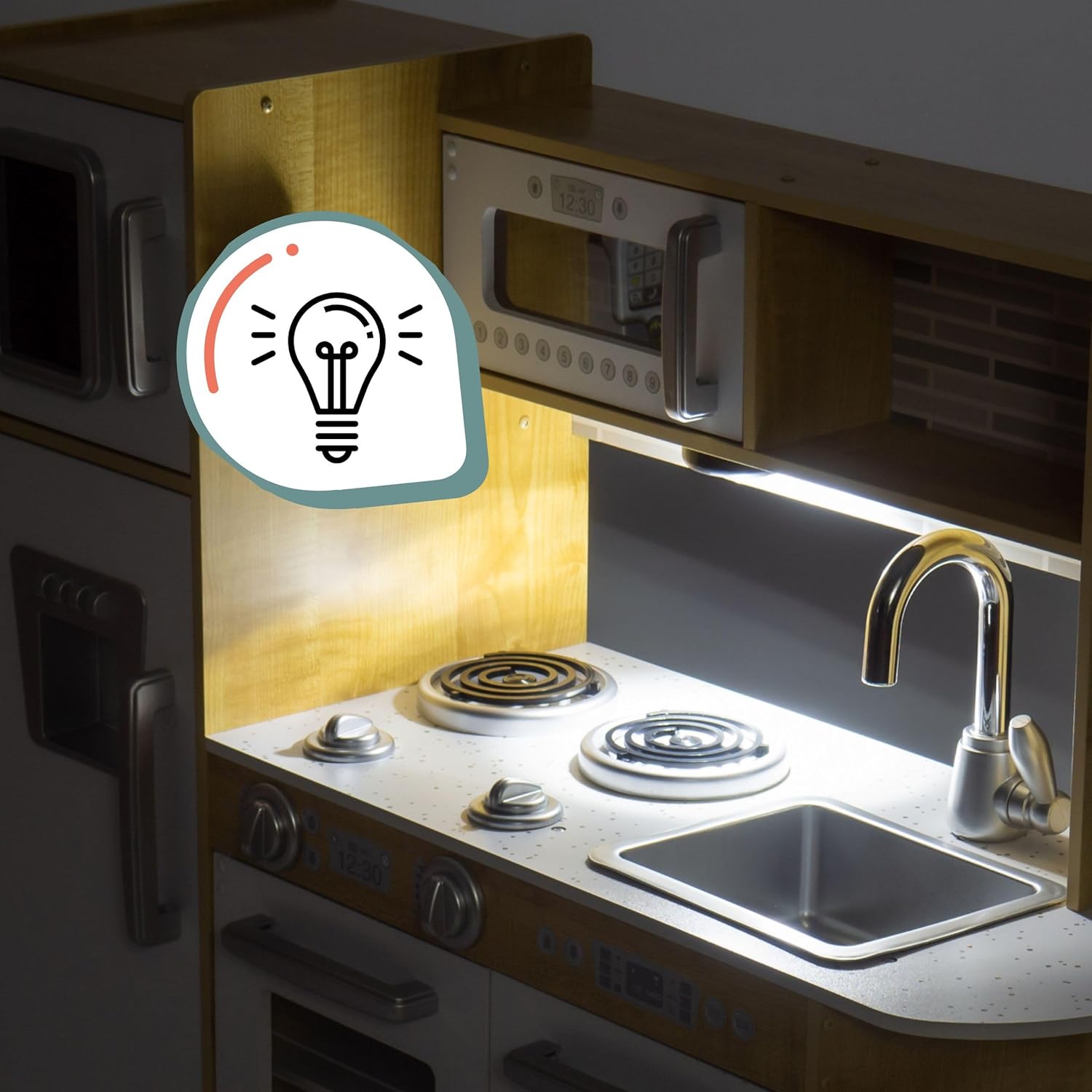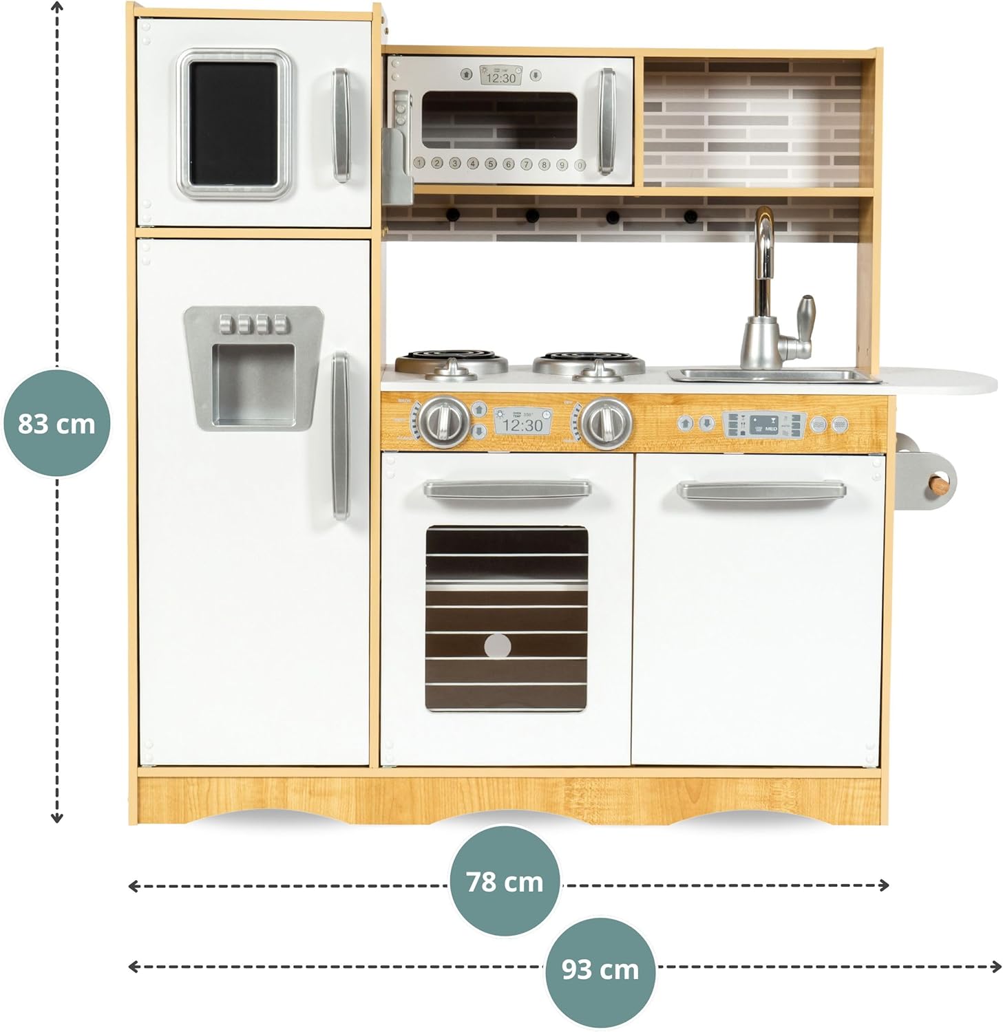 Piccolo Chef in Azione: La tua cucina giocattolo in legno si illumina con LED realistici, creando un'atmosfera magica mentre il tuo bambino prepara deliziosi piatti immaginari nella sua cucina bimba. Un mondo di fantasia che prende vita Tutto Come dai Grandi: Dal forno apribile al piano cottura con manopole funzionanti, questo set cucina bambini ricrea ogni dettaglio. Gli accessori cucina bambini permettono di imitare mamma e papà in cucina divertendosi Spazio alla Creatività: Con frigorifero, microonde e lavello, questa cucina in legno bambina stimola l'immaginazione. I giochi cucina bambini permettono al tuo piccolo chef di inventare ricette e organizzare veri banchetti per amici e pupazzi Costruita per Durare: Realizzata in legno robusto con angoli arrotondati, questa cucina in legno per bambini resiste a anni di avventure culinarie. Materiali selezionati per la massima sicurezza e finiture atossiche Gioco e Apprendimento: Mentre si diverte con la sua cucina per bambini in legno, il piccolo sviluppa coordinazione, creatività e abilità sociali. Un investimento prezioso e divertente e duratura nella crescita