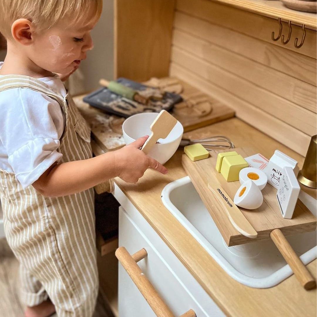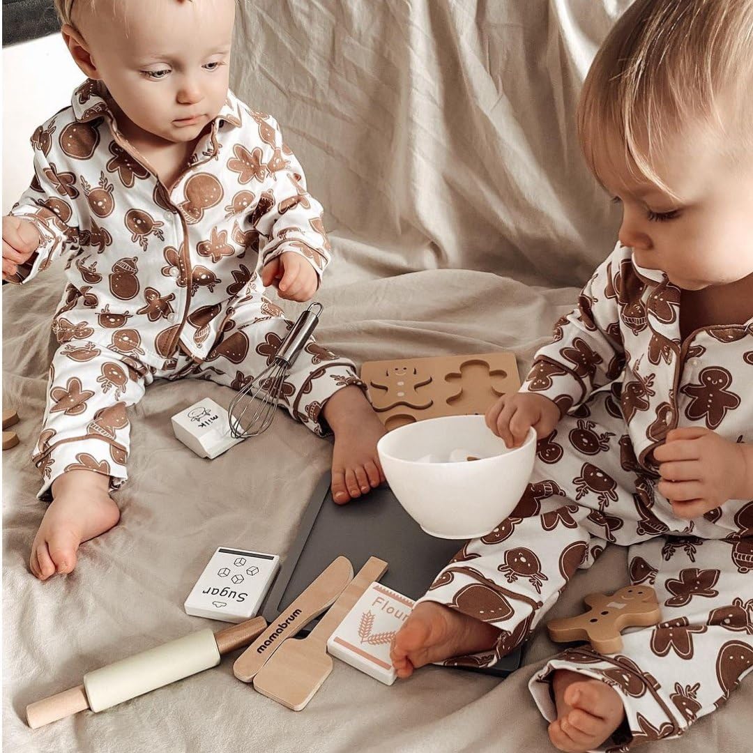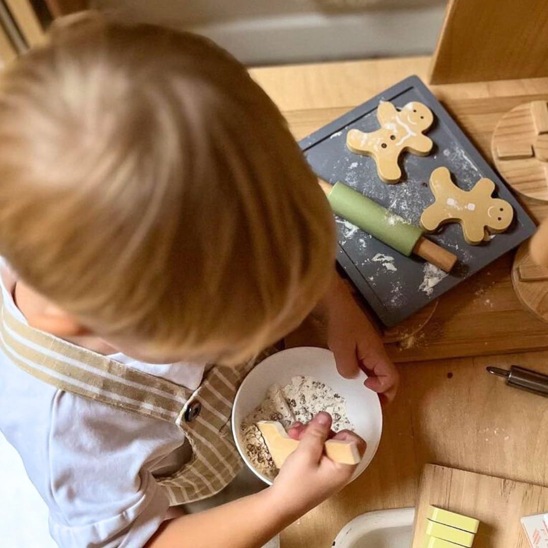 Ampio set da forno per bambini: mattarello in legno, ciotola per mescolare, frusta, stampo per omini di pan di zenzero, ciotola, cucchiaio di legno e altri accessori - tutto a misura di bambino Promuove lo sviluppo in modo giocoso: stendere con il mattarello e dare forma al pan di zenzero allena la motricità fine del bambino e migliora la coordinazione occhio-mano mentre gioca e impara con gioia Giocattoli in legno sicuri: tutte le parti del set di stampi da forno sono realizzate in legno robusto e di alta qualità Prodotto appositamente progettato per le mani dei bambini e può sopportare un uso intensivo. Gioco di ruolo creativo: il vostro bambino assume il ruolo di un fornaio, impara a utilizzare gli utensili da cucina in modo giocoso e sviluppa abilità sociali giocando insieme, oltre a creatività e immaginazione. Giocattolo didattico adatto all'età: il set da forno è adatto a bambini dai 3 anni in su, tutte le parti sono sicure per i bambini e promuovono la naturale curiosità verso la panificazione e la cucina, nonché la creatività e le capacità motorie