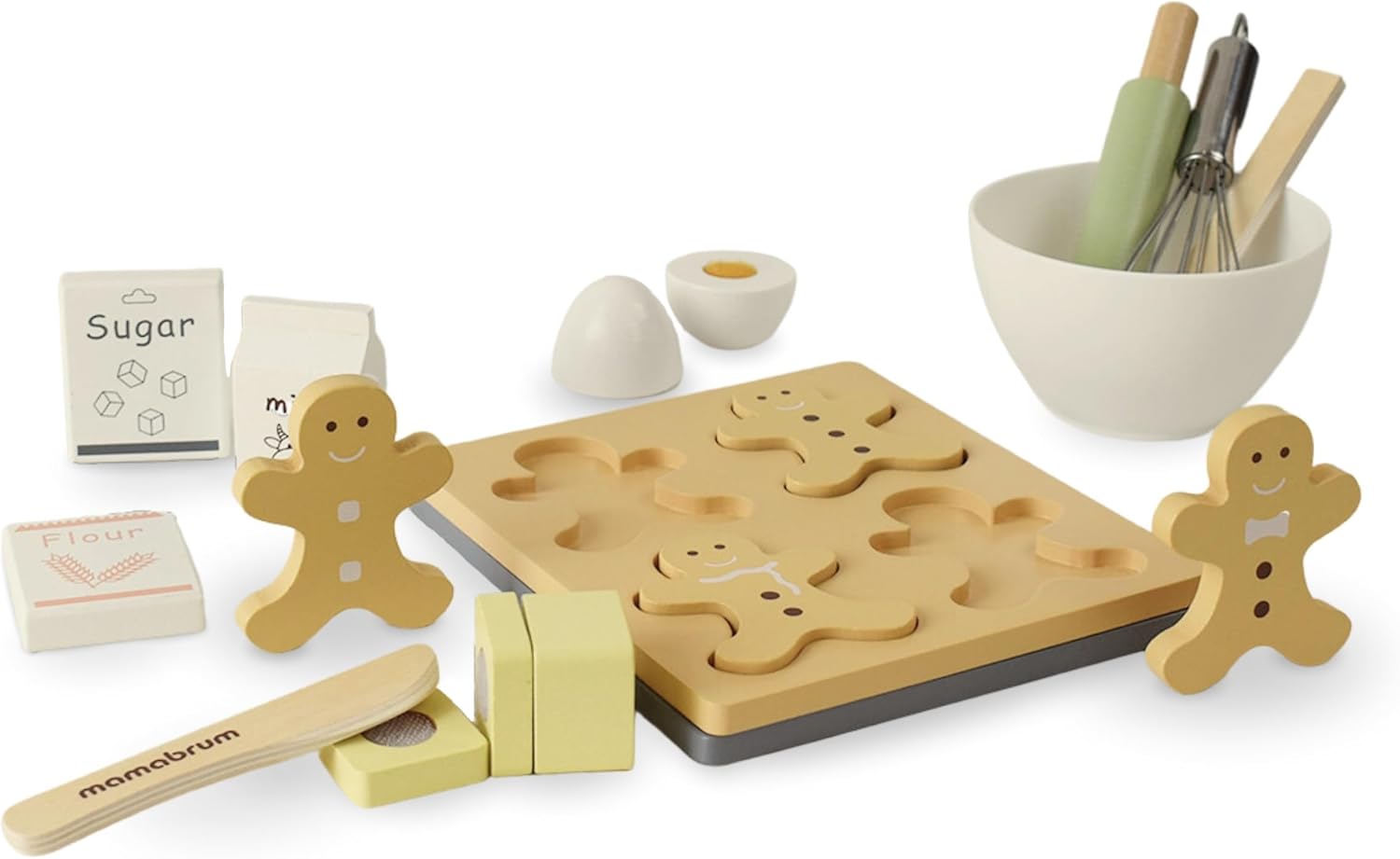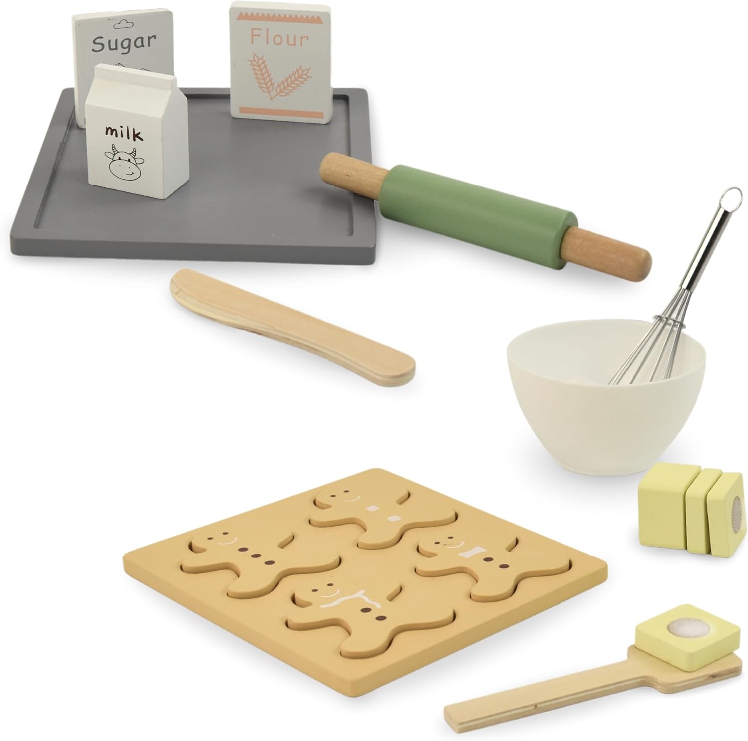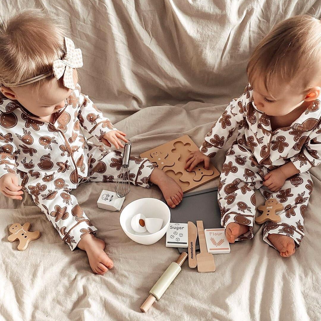 Ampio set da forno per bambini: mattarello in legno, ciotola per mescolare, frusta, stampo per omini di pan di zenzero, ciotola, cucchiaio di legno e altri accessori - tutto a misura di bambino Promuove lo sviluppo in modo giocoso: stendere con il mattarello e dare forma al pan di zenzero allena la motricità fine del bambino e migliora la coordinazione occhio-mano mentre gioca e impara con gioia Giocattoli in legno sicuri: tutte le parti del set di stampi da forno sono realizzate in legno robusto e di alta qualità Prodotto appositamente progettato per le mani dei bambini e può sopportare un uso intensivo. Gioco di ruolo creativo: il vostro bambino assume il ruolo di un fornaio, impara a utilizzare gli utensili da cucina in modo giocoso e sviluppa abilità sociali giocando insieme, oltre a creatività e immaginazione. Giocattolo didattico adatto all'età: il set da forno è adatto a bambini dai 3 anni in su, tutte le parti sono sicure per i bambini e promuovono la naturale curiosità verso la panificazione e la cucina, nonché la creatività e le capacità motorie