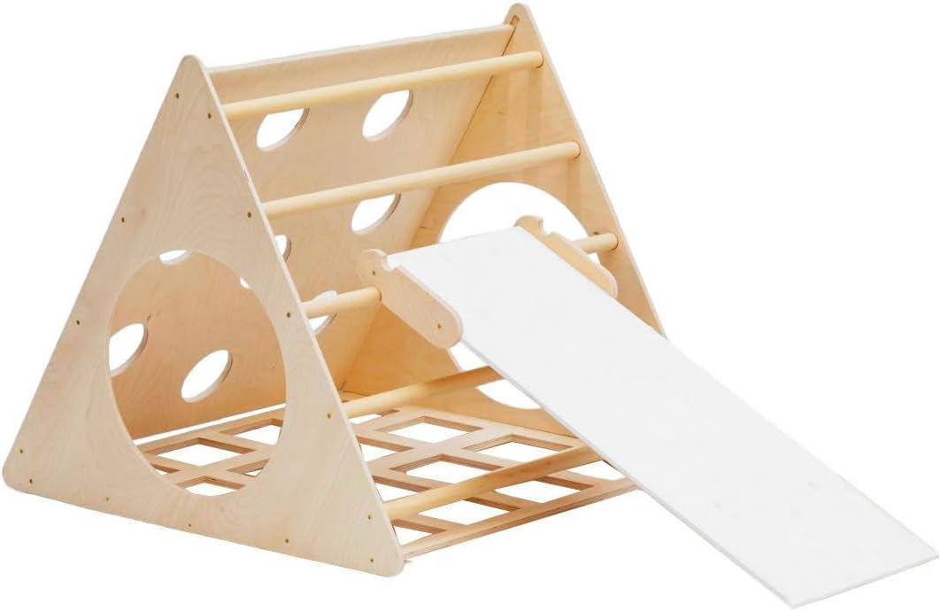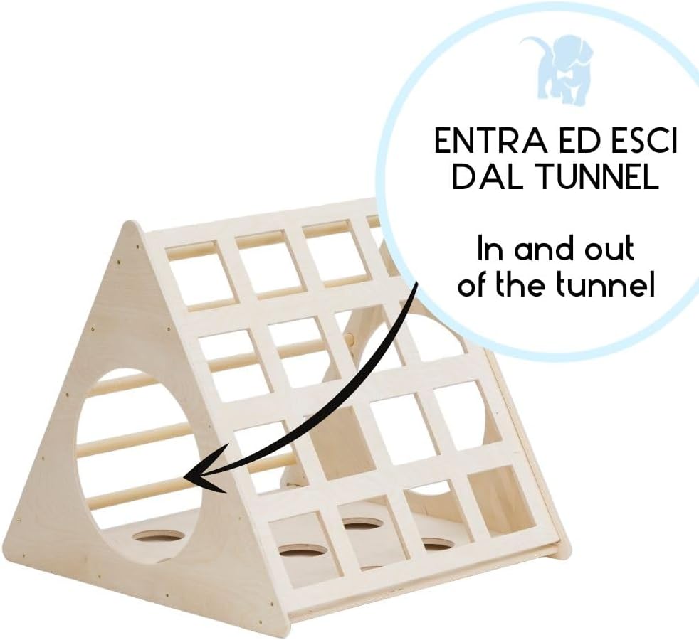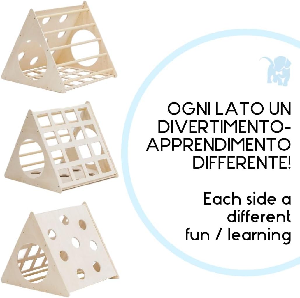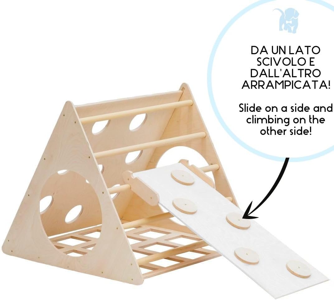 SPEDIZIONE RAPIDA E AFFIDABILE - Scegli i nostri prodotti e approfitta di una spedizione veloce e sicura. Processeremo il tuo ordine in 24 ore per garantire una consegna rapida e soddisfare al meglio le esigenze di grandi e piccini TRIANGOLO PER ARRAMPICATA CON SCIVOLO: Il Triangolo firmato Mami Kids offre un ambiente sicuro per l'esplorazione, permettendo ai bambini di muoversi liberamente e migliorare le loro abilità motorie in totale sicurezza e senza distrazioni dovute a suoni o luci. Dotato di uno scivolo integrato, stimola l'immaginazione e la creatività dei bambini mentre si divertono SVILUPPO MOTORIO E COGNITIVO: Questa struttura per l'arrampicata non solo aiuta i bambini a sviluppare l'equilibrio e la fiducia nel proprio corpo, ma li stimola anche a esplorare la loro creatività mentre giocano in modo semplice e naturale. Attraverso l'uso del Triangolo, i bambini imparano i movimenti e rafforzano la loro autostima SICUREZZA E FUNZIONALITÀ: Il Triangolo di Mami Kids offre un ambiente sicuro e privo di rischi grazie al suo design senza pezzi smontabili o staccabili che potrebbero costituire un pericolo per i bambini. Ogni lato offre un'esperienza di divertimento-apprendimento differente, con un tunnel incluso che permette ai bambini di entrare ed uscire in modo sicuro e divertente DESIGN ITALIANO DI ALTA QUALITÀ: Realizzato con legno naturale ecosostenibile, questo percorso è stata progettato con attenzione per garantire stabilità e sicurezza durante l'uso. 100% Made in Italy, il suo design semplice ed elegante in legno si adatta ad ogni ambiente domestico, offrendo un'esperienza divertente e priva di rischi per i bambini
