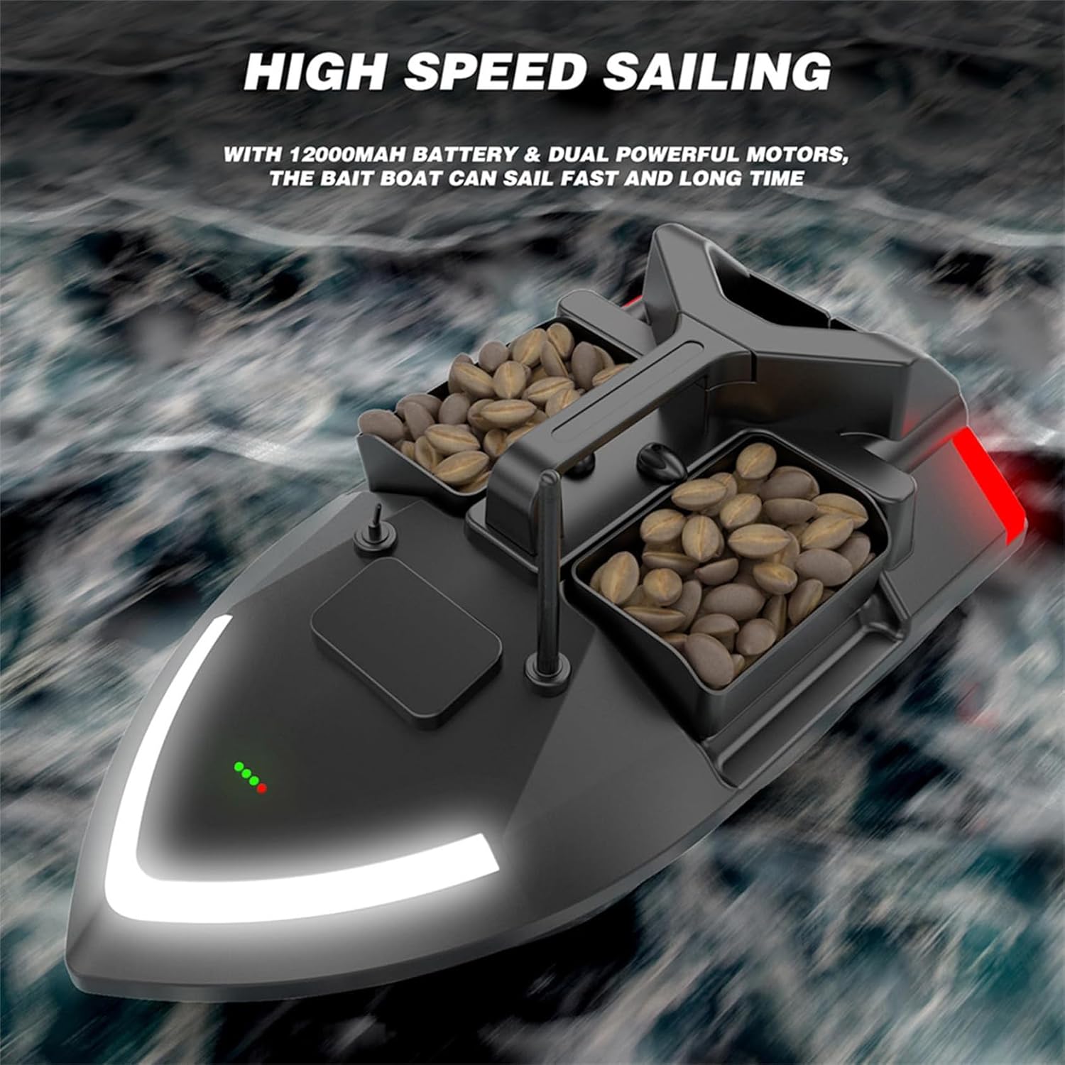 ♐ 【Barca con esche da pesca】: che può trasportare più di 2 kg di esche o ami, tutti i vassoi possono essere controllati separatamente. La barca naviga in modo fluido e silenzioso per l'esca e altri scopi e può navigare in una direzione fissa una volta premuto il pulsante Auto Cruise in alto a destra del controller. ♐【Ritorno automatico】La distanza del telecomando è inferiore a 500 metri. Quando la barca ha la batteria scarica, perde il segnale o supera i 500 metri, ritornerà automaticamente. Non aver paura di perdere. ♐【Lunga durata e luce notturna】: dotato di batteria di grande capacità, basso consumo energetico e lunga durata. Con la luce anteriore a LED e gli indicatori di direzione ad alta luminosità, è conveniente determinare chiaramente la posizione dell'imbarcazione da una lunga distanza e garantire un'accurata individuazione dell'annidamento. ♐ 【Correzione automatica della rotta】 Sis-tema di bilanciamento automatico integrato, che può aiutare a correggere automaticamente l'imbardata e garantire che la barca continui ad andare dritta sotto vento/onde e carico, potente sis-tema motore a doppia alimentazione, funzionamento silenzioso. ♐ 【Ampia gamma di applicazioni】 Adatto a fiumi, laghi e aree con acque poco profonde. Questo è uno strumento di pesca indispensabile e un dispositivo pratico. È una buona scelta per te.