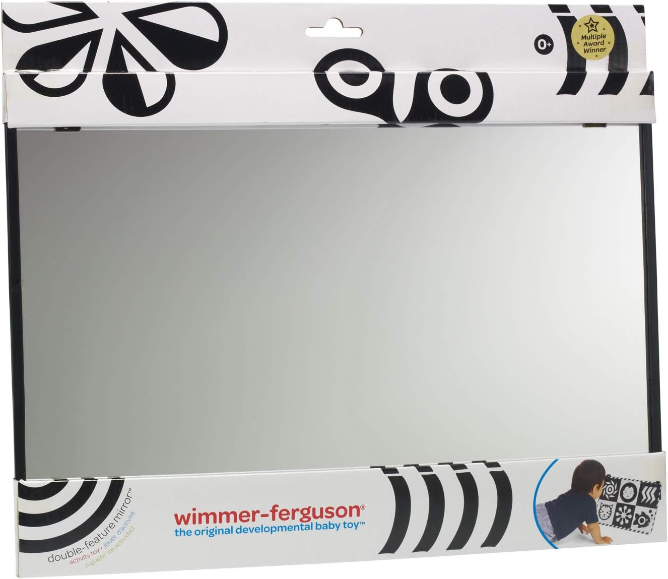 Giocattoli per lo sviluppo in bianco e nero: dalla premiata collezione Wimmer-Ferguson di Manhattan Toy, l'innovatore originale dei giocattoli per lo sviluppo in bianco e nero. I modelli di tutti i prodotti Wimmer-Ferguson si adattano ai cambiamenti del bambino nello sviluppo visivo grazie a una gamma di complessità e colori di design, ispirati alla ricerca di laboratorio. Dettagli del giocattolo a specchio Baby: lo specchio a doppia funzione include uno specchio infrangibile sicuro per i bambini su un lato per la scoperta di sé e la visione del bambino. Il retro presenta immagini ad alto contrasto, in bianco e nero per lo sviluppo visivo; giocattolo adatto per neonati e fino misura 35,56 cm di lunghezza x 25,4 cm H. GIOCATTOLO AD ALTO CONTRASTO VISIVO PER INFANTI: La ricerca professionale ha dimostrato che i neonati sono più attratti dai modelli ad alto contrasto che dal colore o dalla luminosità da soli. Lo specchio a doppia funzione Wimmer-Ferguson per auto-scoperta è stato progettato per questo scopo, incoraggiando il bambino a imparare il riconoscimento dei motivi.