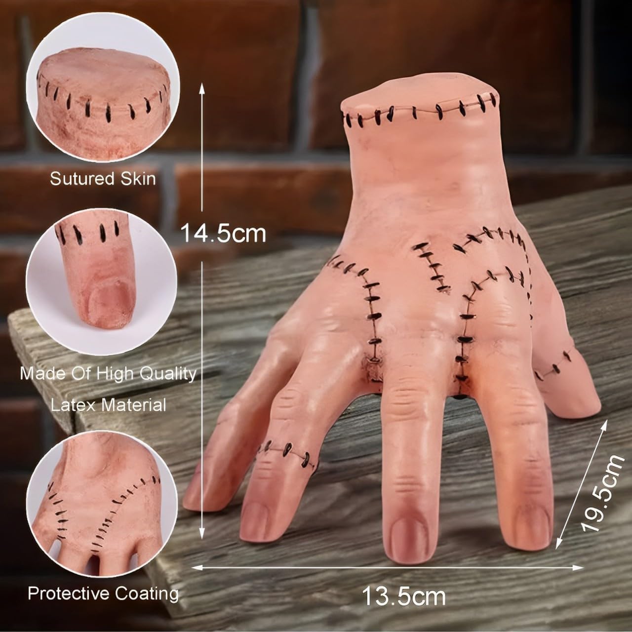 Design realistico: gli oggetti del mercoledì sono realizzati in modo realistico e possono stare orizzontalmente come una mano che cammina. Le cicatrici e le cuciture sulle mani, la lucentezza della pelle e altri dettagli sono perfettamente restaurati, questa è l'opera d'arte perfetta di Wednesday Lattice di alta qualità: mano ghiacciata realizzata in materiale di lattice di alta qualità, consistenza reale, rivestimento protettivo impermeabile e anti-sbiadimento sulla superficie, durevole, ecologico e sicuro, aspetto bello e realistico. Facile da usare: basta attaccare il nastro biadesivo in dotazione sul palmo della mano finta degli accessori Helloween Wednesday, indossare un costume da Wensdey per bambini e attaccare la mano sulla spalla per spaventare le persone. Decorazione per la casa: gli oggetti di scena spaventosi per le mani sono perfetti come decorazione perfetta per il tuo soggiorno, camera da letto, studio o ufficio, gli oggetti di scena per le mani finte sono creativi e divertenti e attireranno sicuramente l'attenzione di tutti intorno a te Scenario d'uso: le mani di Halloween sono adatte per cosplay, Halloween, feste di compleanno, eventi scolastici, ecc. essere usato come decorazione di oggetti di scena di Halloween, con il costume del mercoledì per renderti felice durante le vacanze