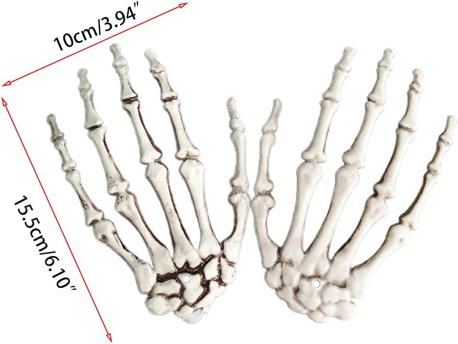 Possono essere utilizzate per l'insegnamento e il riconoscimento delle ossa nei laboratori scolastici o in classe per offrire agli studenti una migliore comprensione. Queste mani scheletriche sono bellissime per decorare porte, tavoli, stanze segrete, case infestate, cortili e molti altri luoghi per creare atmosfera. Gli oggetti di scena scheletrici stanno benissimo all'esterno, nel cortile o nel giardino, impressionano i bambini, gli ospiti adulti o i personaggi che visitano il tuo terreno sacro o. Queste mani scheletriche realistiche sono robuste e leggere e riutilizzabili, compatte e portatili, non facili da danneggiare o rompere. Ogni pezzo di mano scheletrica è molto vicino alle dimensioni realistiche della mano umana, molto realistico per te. ingannare gli altri ad Halloween