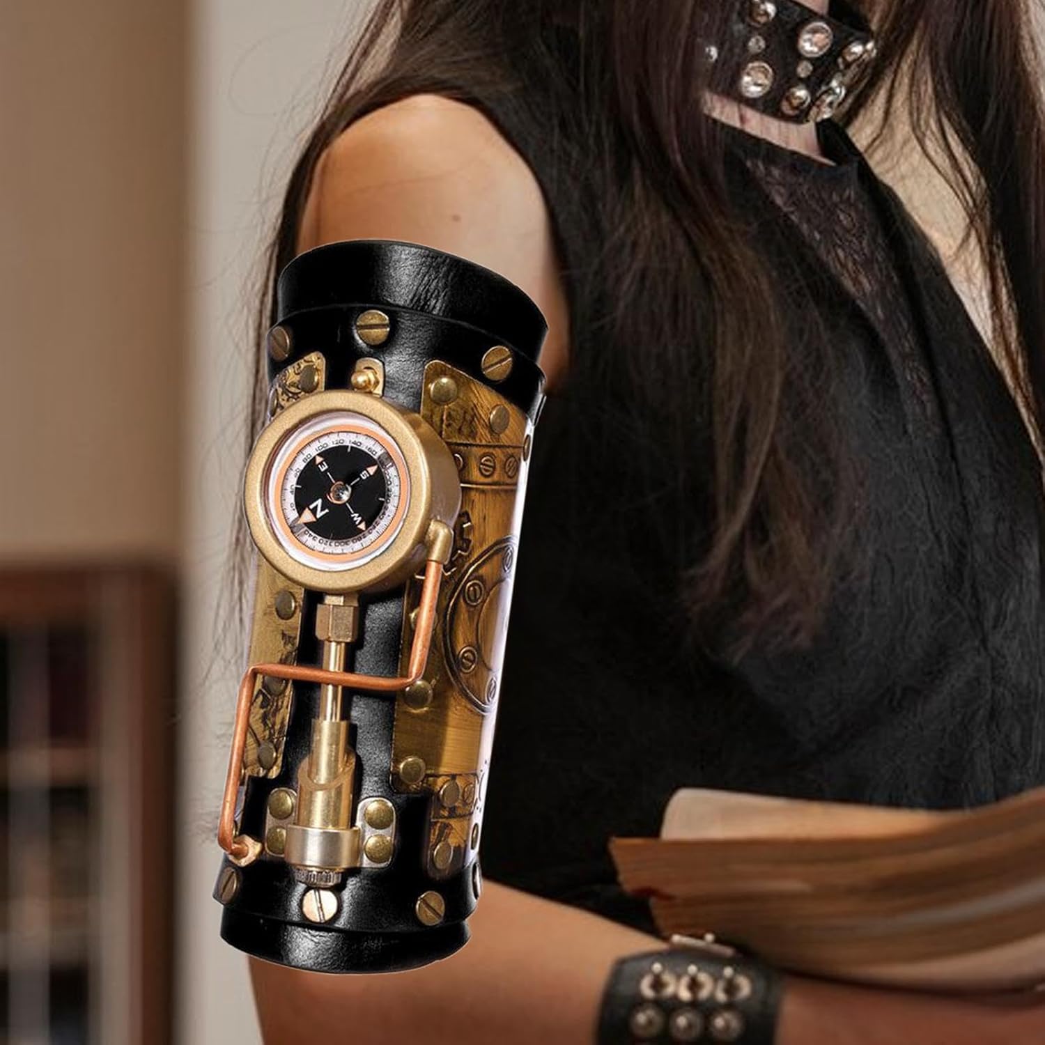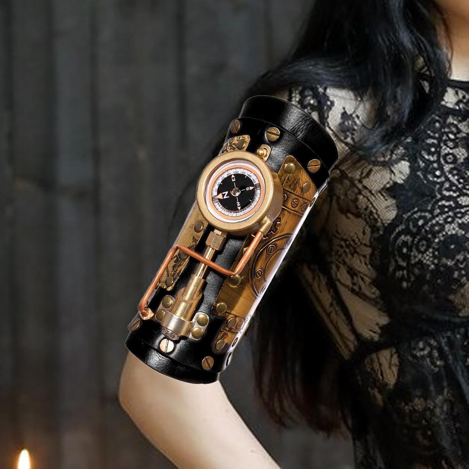 Applicazione: questo cinturino da polso steampunk nero è perfetto per cerca abiti da pirata con abiti steampunk. 【Funzionale】 Ottimo per cosplay o un'aggiunta sorprendente al tuo guardaroba, questo braccialetto offre un pezzo versatile che ti consente di mostrare il tuo per lo stile steampunk. 【Universale】Taglia universale, 1 taglia adatta a . Il vambraccio medievale è ottimo per costumi in maschera, oggetti di scena teatrali, costumi di festival e rievocazioni storiche. 【Materiale di qualità】 Questa manica da braccio Steampunk è realizzata in materiale in pelle PU, leggero, robusto e facile da indossare. 【Design】Stile steampunk vintage, tono nero, pieno di elementi a vite, con una bussola resistente.