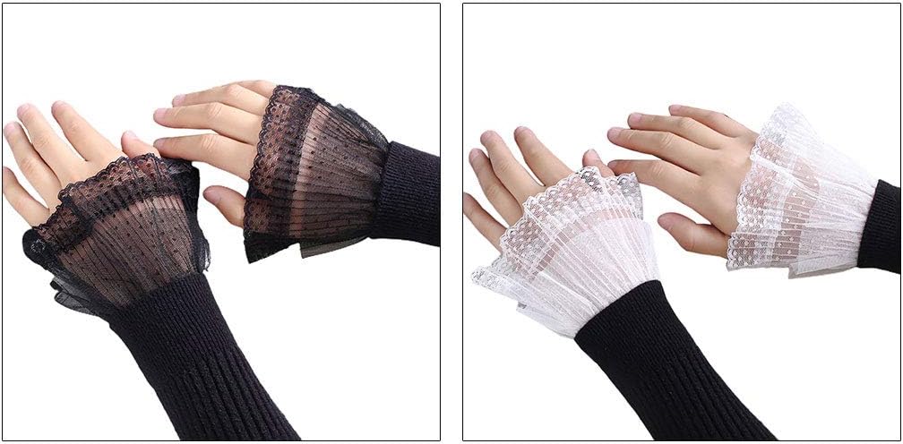 Polsini svasati, design increspato plissettato, pizzo dolce e delicato, tinta unita. La decorazione da polso finta da donna dal design semplice è l'accessorio più caratteristico. Delicato sulla pelle, comodo al tatto e morbido da indossare. Fascia elastica intorno al polso, taglia adatta alla maggior parte delle donne e ragazze. Una buona decorazione per maglioni, camicette, abiti, uniformi, giacche e altri vestiti casual.