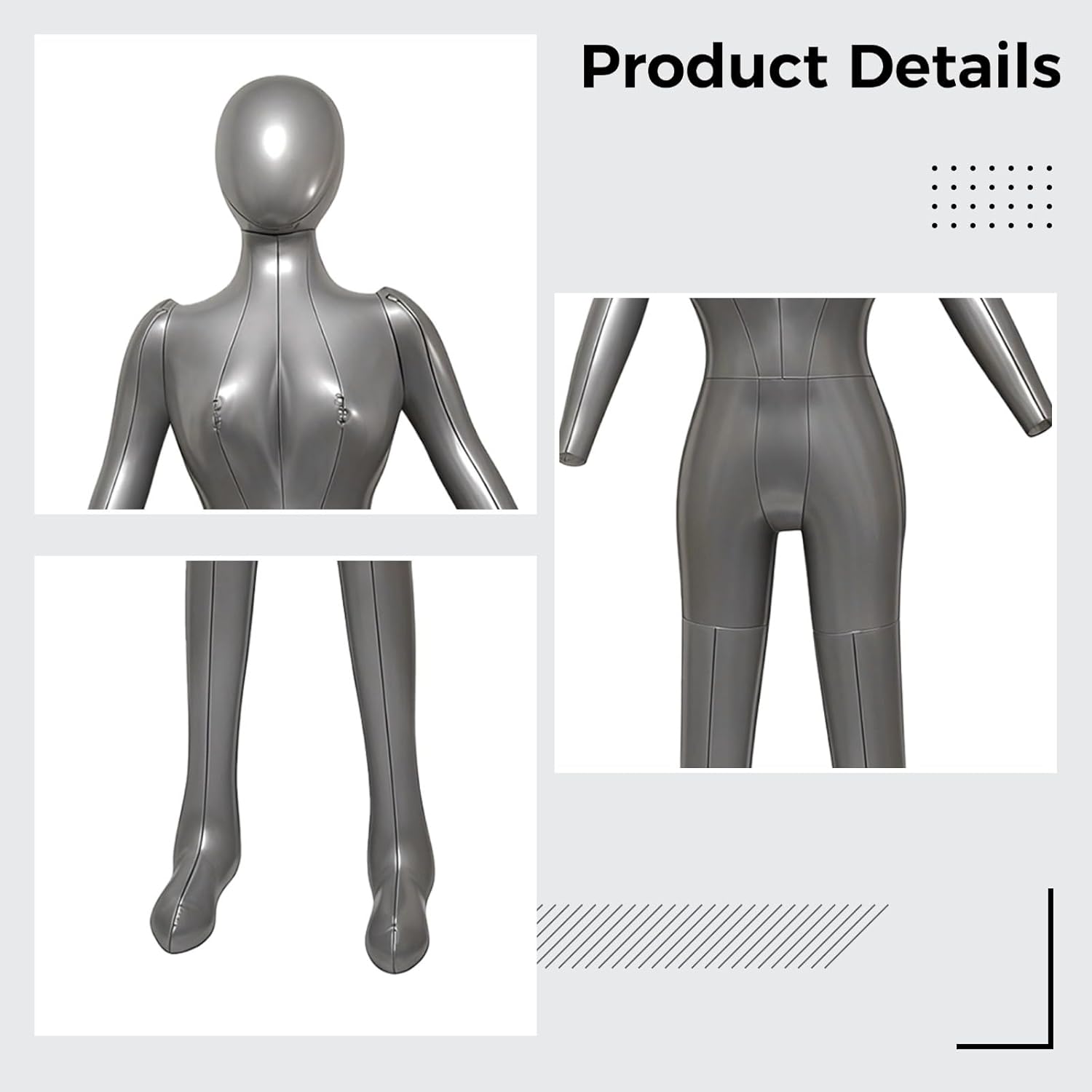 Costruzione in PVC: realizzato con materiale in PVC; garantisce longevità e resilienza; resiste all'uso regolare Forma umana: progettata per rappresentare accuratamente la forma del corpo umano; mostra vestiti e accessori in modo realistico; migliora l'aspetto visivo Display versatile per abbigliamento: adatto per vari articoli di abbigliamento, tra cui abiti e abiti; soddisfa diverse esigenze di visualizzazione Facile installazione e stoccaggio: gonfiaggio semplice per un uso immediato; stoccaggio compatto dopo lo sgonfiaggio; design portatile per un uso flessibile Molteplici applicazioni: per fotografia di abbigliamento, vetrine, costumi di Halloween e altri usi; due manichini forniti per diverse opzioni di visualizzazione