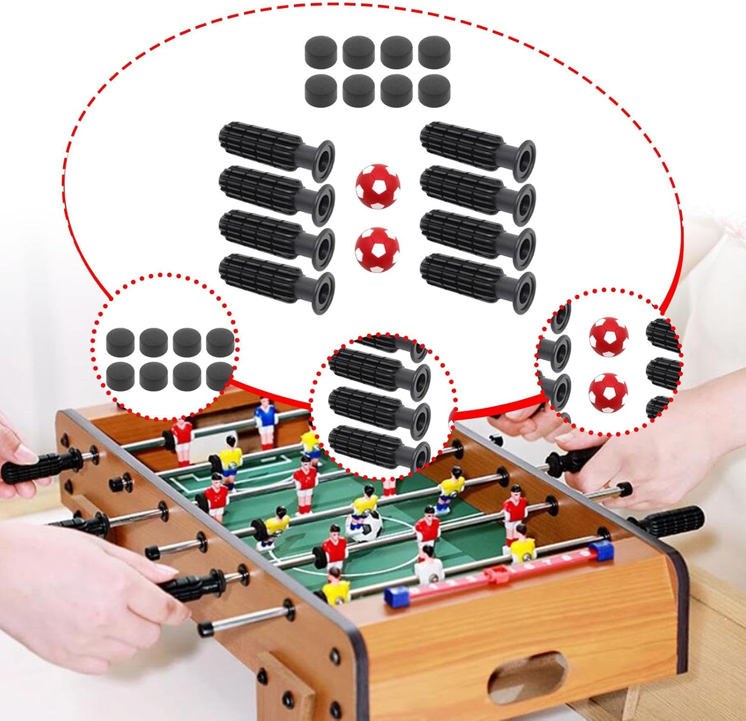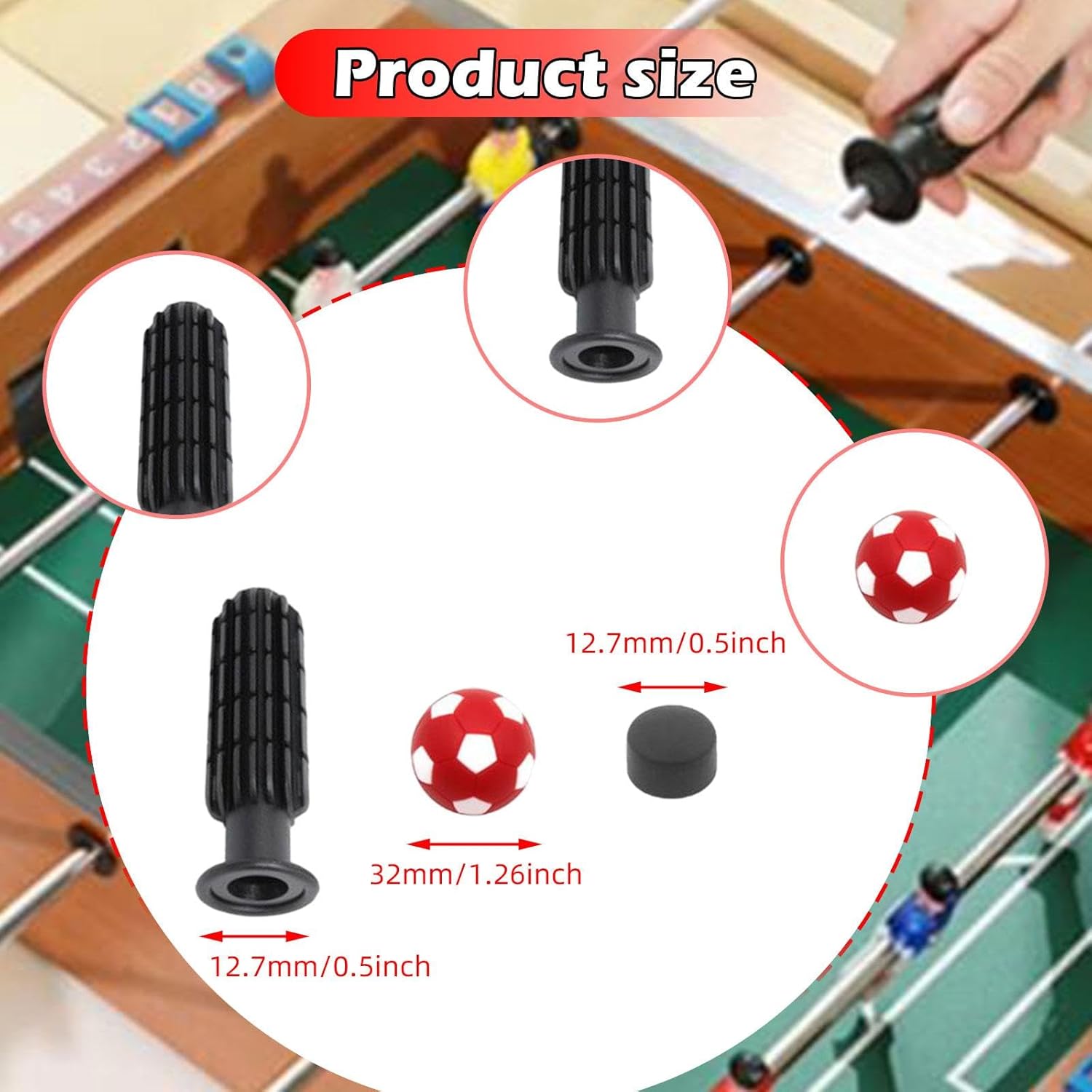【Controllo del gioco migliorato】: le comode maniglie con maneggevolezza comoda forniscono un migliore controllo delle barre kicker per un'esperienza di gioco migliore e un movimento preciso della palla. Costruzione durevole in polipropilene: realizzate in materiale PP di alta qualità, queste maniglie possono resistere al gioco regolare e fornire prestazioni di lunga durata senza rompersi o usurarsi. 【Soluzione di riparazione completa】: include 8 maniglie per calcio balilla, 8 tappi terminali per asta e 2 palloni sostitutivi per la manutenzione completa delle macchine da calcio e dei pezzi di ricambio. Compatibilità dimensioni standard: presenta fori di presa da 1/2" di diametro e tappi terminali con palloni da calcio da 1,25" che si adattano alla maggior parte dei tavoli da calcio standard. 【Installazione rapida】 Il semplice processo di sostituzione consente una facile installazione senza strumenti speciali, rendendo la sostituzione di parti vecchie o rotte efficiente e senza problemi.
