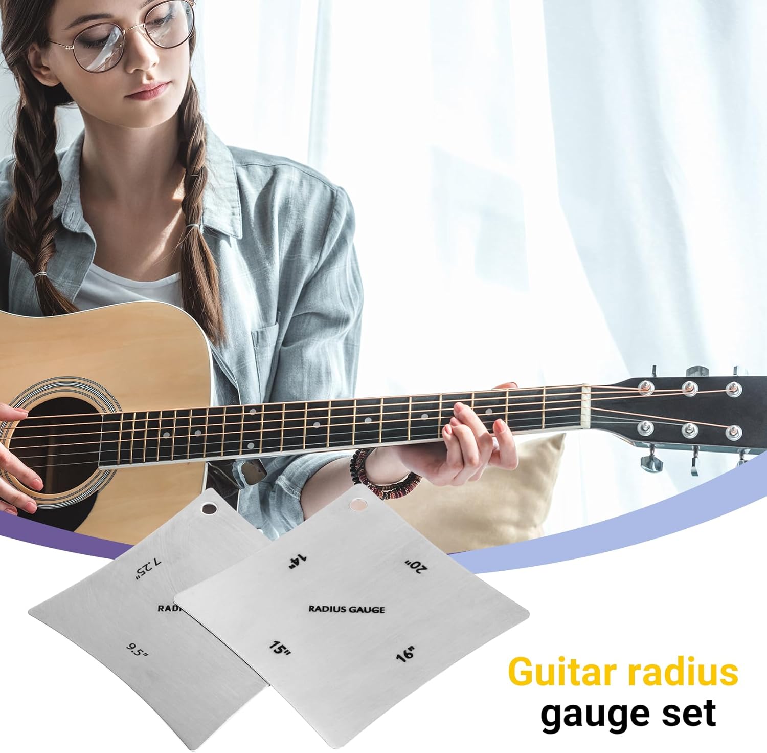 Peso 'articolo: 45g / 1,5oz Indicatori del raggio della tastiera della chitarra. Colore: Materiale: acciaio inossidabile