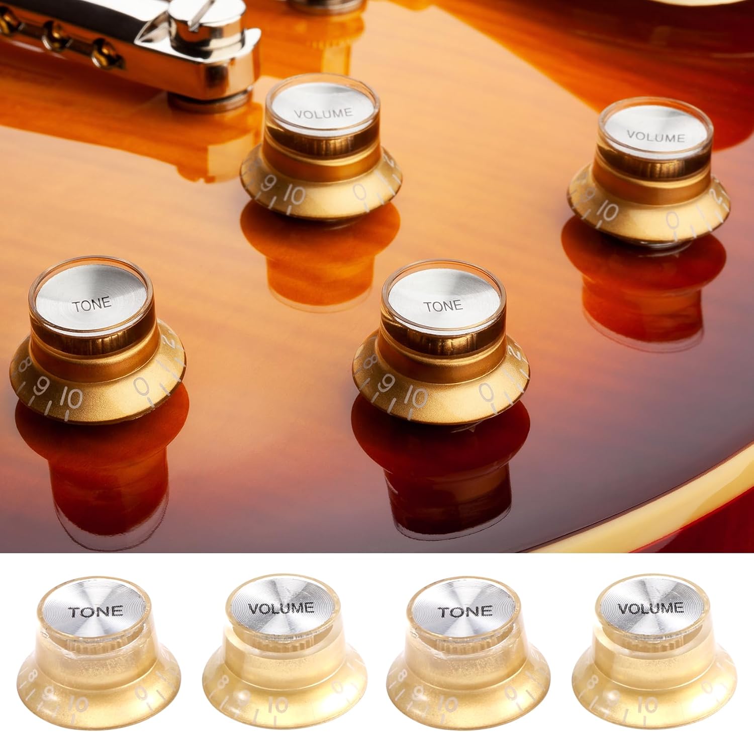 Si adatta alla chitarra stile e alla chitarra più simile Quasi tutte le manopole a pressione che si adattano ad pot a 18 scanalature con zigrinatura grossolana non si adattano ad a 24 scanalature con zigrinatura fine vestito per chitarra e Colore: come mostrato