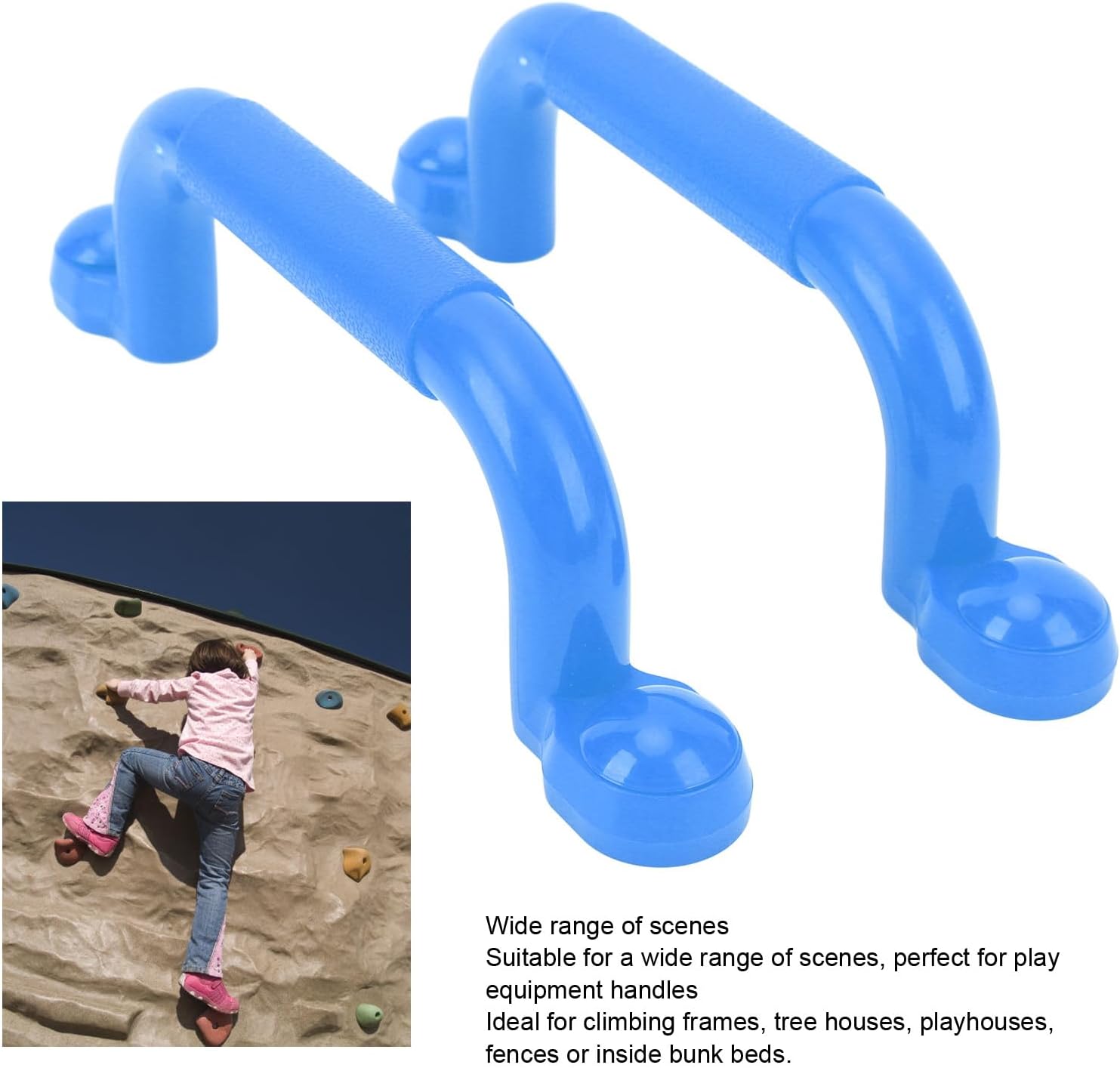 [MATERIALE PREMIUM] Queste maniglie per parco giochi sono realizzate in PE resistente e materiali in ferro e hanno una forte capacità portante per una presa sicura durante gli sport all'aria aperta. [GRANDE DESIGN] Il grande design è adatto a utenti di tutte le età e aumenta il divertimento nel parco giochi. Le proprietà antiscivolo forniscono una presa sicura per le mani dei più piccoli. [FACILE DA INSTALLARE] Queste maniglie di sicurezza sono facili e veloci da installare in parchi giochi o stadi, richiedono poca manutenzione e sono adatte per strutture da arrampicata, case sugli alberi, recinzioni e altro ancora. [AMPIA SELEZIONE DI SCENE] Versatili e adatte a diversi scenari, queste maniglie per parchi giochi soddisfano gli standard delle attrezzature sportive per garantire sicurezza e comfort a tutti gli utenti. [PACCHETTO COMPLETO] Include 2 maniglie per parco giochi e un pacchetto di accessori con tutto il necessario per l'installazione. Migliora il tuo set da gioco con queste maniglie professionali e robuste.