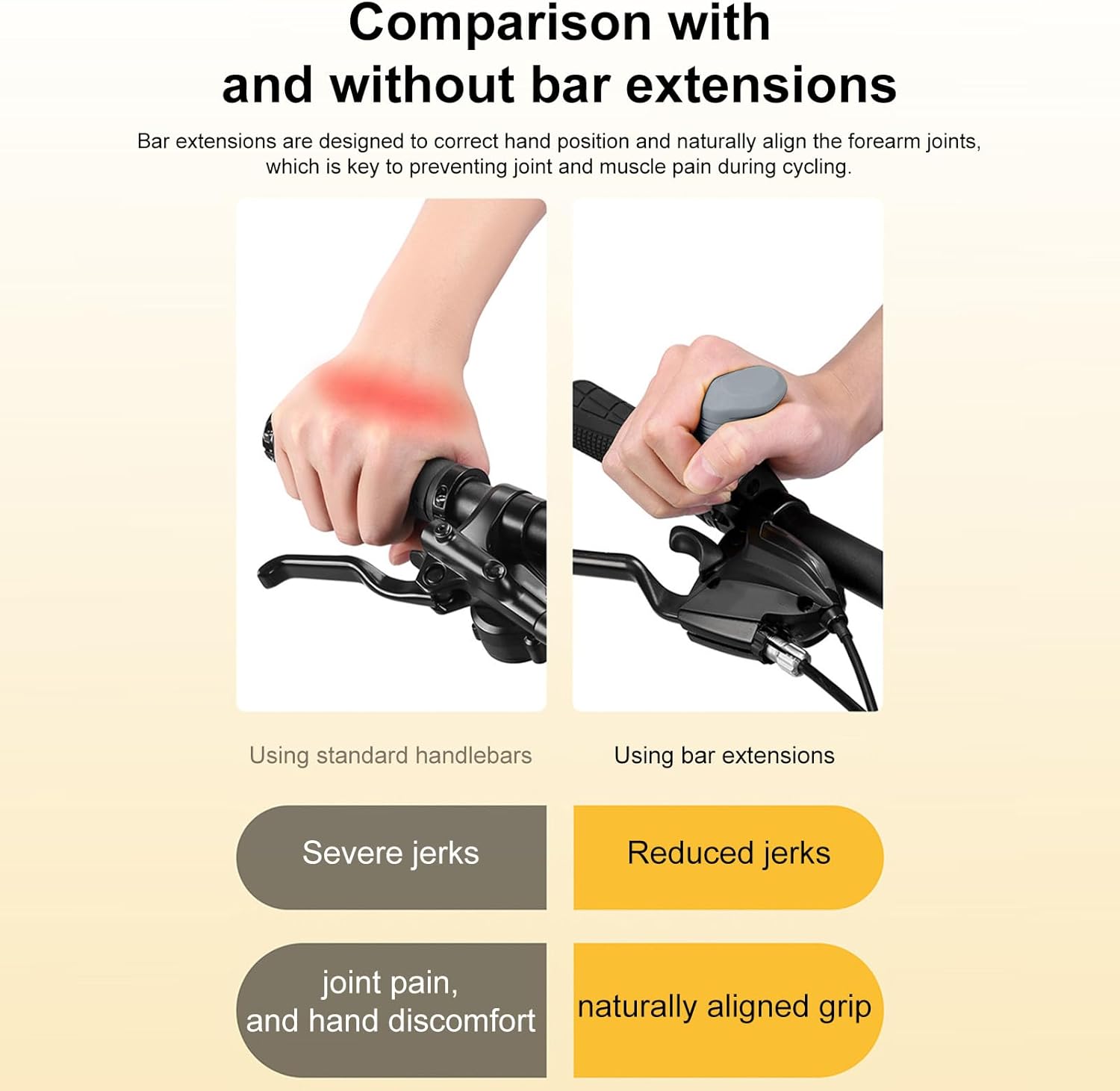 Regolabile da diverse angolazioni: le impugnature regolabili con supporto per il pollice offrono una riduzione della fatica durante lunghi allenamenti in bicicletta, fornendo opzioni per trovare l'angolo di presa più comodo Comfort di guida migliorato: con una struttura leggera di 103 grammi, queste impugnature eliminano il carico extra di guida, offrendo un design stabile che è perfettamente adatto per mountain bike, garantendo prestazioni ottimali e comfort su terreni accidentati senza sforzo Forti e robuste: progettate utilizzando forti nuclei in nylon e superfici imbottite in silicone, queste impugnature offrono controllo della presa, resistono allo scivolamento e resistono efficacemente all'esposizione a pioggia e sudore Installazione semplificata: le impugnature per bici consentono una facile regolazione della posizione del cambio, con un semplice processo di configurazione ottimizzato per una migliore vestibilità e una facile installazione tra manubrio e cambio, garantendo prestazioni affidabili Ampiamente usato: aumenta il piacere di guida integrando caratteristiche ergonomiche, fornendo un maggiore comfort su lunghe distanze e adattandosi senza sforzo a manubri di diametro 22 mm per una funzionalità affidabile