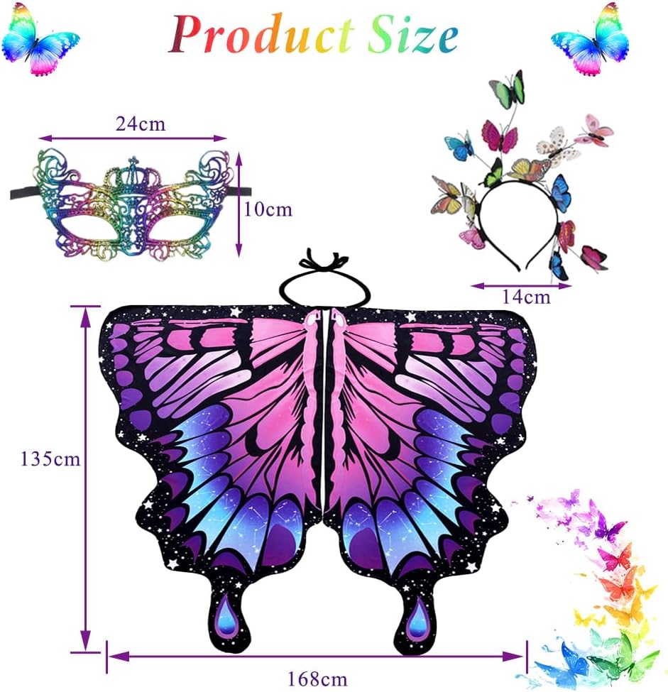 🦋【Costume da farfalla per donna, set da 3】Questo colorato costume da farfalla per donna è composto da 1 mantello da farfalla laterale AB per adulti, 1 fascia per capelli da farfalla 5D regolabile gratuita e 1 maschera in pizzo incantevole. È un costume unico per il carnevale di Halloween che rende il tuo cosplay da farfalla ancora più realistico. 🦋【Design alla moda】: il mantello è stampato con un motivo a cielo stellato. La scollatura del bellissimo mantello da farfalla è stampata con strass ed è realizzata in materiale elastico morbido e delicato sulla pelle che non darà fastidio al collo. È inoltre dotato di chiusure in velcro in modo da poter regolare liberamente la taglia. Passanti elastici su entrambe le estremità delle ali per allargarle e farti sbattere come una vera farfalla 🦋【Comodo mantello da farfalla】La sciarpa con ali di farfalla è realizzata in materiale poliestere di alta qualità ed è comoda e setosa. Tessuto delicato sulla pelle, traspirante e morbido, molto comodo da indossare al chiuso o in riunioni di più persone. 🦋【Modello di farfalla stampato in digitale 3D】: il mantello con ali di farfalla utilizza la stampa digitale 3D per garantire che il motivo sia vivido, delicato e bello. La tecnologia rende le ali di farfalla molto più vivide. La forma e i dettagli del motivo delle ali di farfalla sono molto simili alle vere farfalle. Indossa questo mantello a farfalla, sei il folletto ninfa farfalla. 🦋【Fascia per capelli a farfalla 5D】: la fascia per capelli a farfalla che si abbina perfettamente al mantello a farfalla ha molte farfalle 5D, che sono realistiche e aggiungono colori diversi a questo costume da farfalla, il che ti renderà più attraente alla festa e ti renderà l'intero focus della festa 🦋【Facile da indossare e da togliere】: il mantello a farfalla da donna di Halloween è facile da indossare e da togliere. Basta mettere il colletto intorno al collo e mettere l'anello all'estremità dell'anello del mantello sul dito. La scollatura è progettata con materiale elastico e velcro, può essere facilmente indossata sul collo senza disagio, quindi puoi indossarla più a lungo. E il morbido mantello a farfalla vola come le ali di una farfalla e ti fa sembrare una bellissima fata farfalla.
