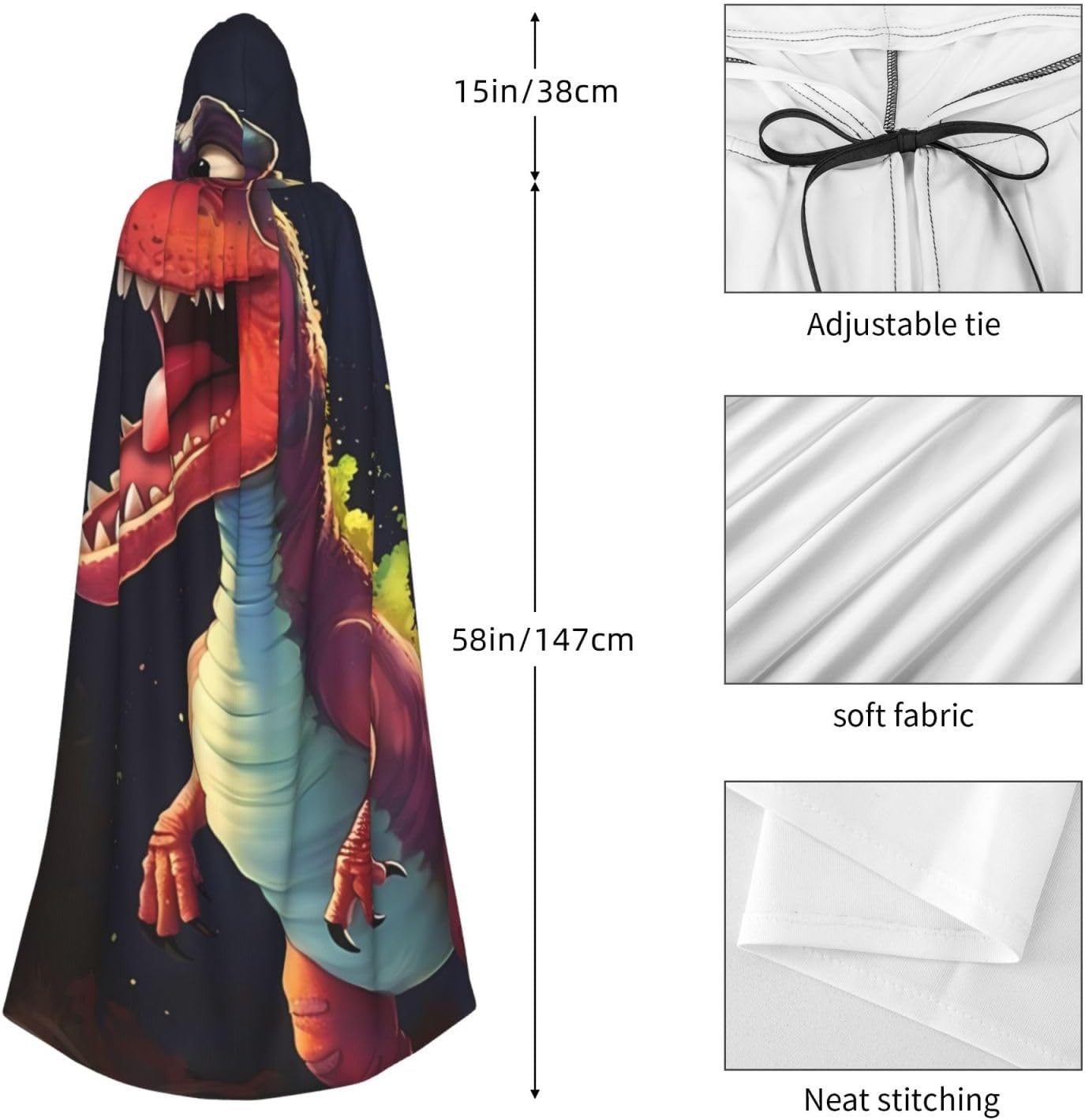 Materiale e design con dinosauro dalla bocca grande: il tessuto è realizzato in 100% fibra di poliestere (poliestere) tessuto di alta qualità, morbido e confortevole. Il design con cappuccio non è solo elegante e bello, ma fornisce anche calore extra alla testa e al collo. \r Caratteristiche del prodotto: il poncho oversize con cappuccio è un poncho con cappuccio senza lacci, senza cerniera, comodo realizzato in tessuto lungo, resistente e non prurito. \r Dimensioni del prodotto: il cappello misura 38,1 cm di altezza, 147,3 cm di lunghezza, 154 cm di larghezza. \r Adatto per occasioni: feste di Natale, feste di Halloween, feste in costume, celebrazioni pagane. Ideale per travestimenti, cosplay, costumi da scena, streghe, vampiri, royalty, scelta regalo perfetta per amici o familiari. \r Persone applicabili: adulti, unisex.