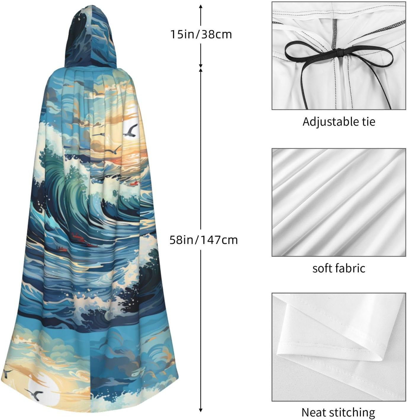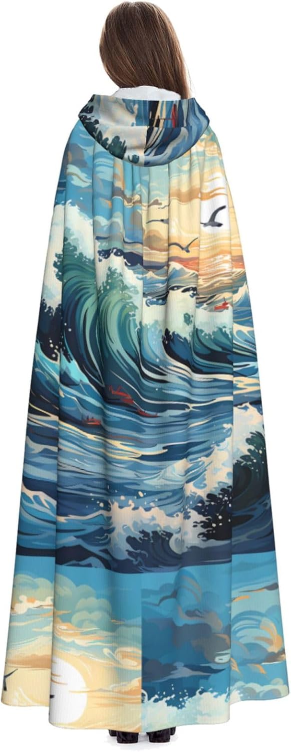 Wave Sailboat Seagull Materiale e design: il tessuto è realizzato in 100% fibra di poliestere (poliestere) tessuto di alta qualità, morbido e confortevole\r Il design con cappuccio non è solo elegante e bello, ma fornisce anche calore extra alla testa e al collo. \r Caratteristiche del prodotto: il poncho oversize con cappuccio è un poncho con cappuccio senza lacci, senza cerniera, comodo realizzato in tessuto lungo, resistente e non prurito. \r Dimensioni del prodotto: il cappello misura 38,1 cm di altezza, 147,3 cm di lunghezza, 154 cm di larghezza. \r Adatto per occasioni: feste di Natale, feste di Halloween, feste in costume, celebrazioni pagane. Ideale per travestimenti, cosplay, costumi da scena, streghe, vampiri, royalty, scelta regalo perfetta per amici o familiari. \r Persone applicabili: adulti, unisex.