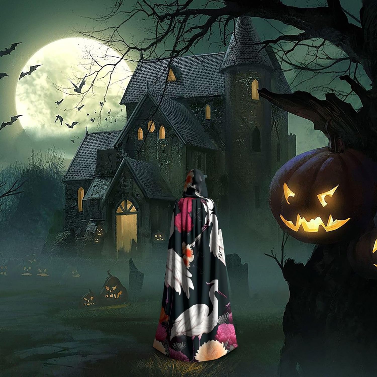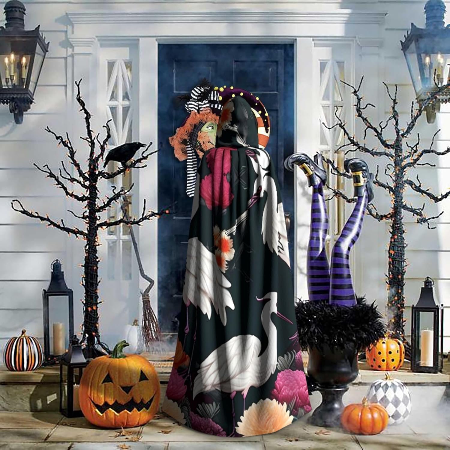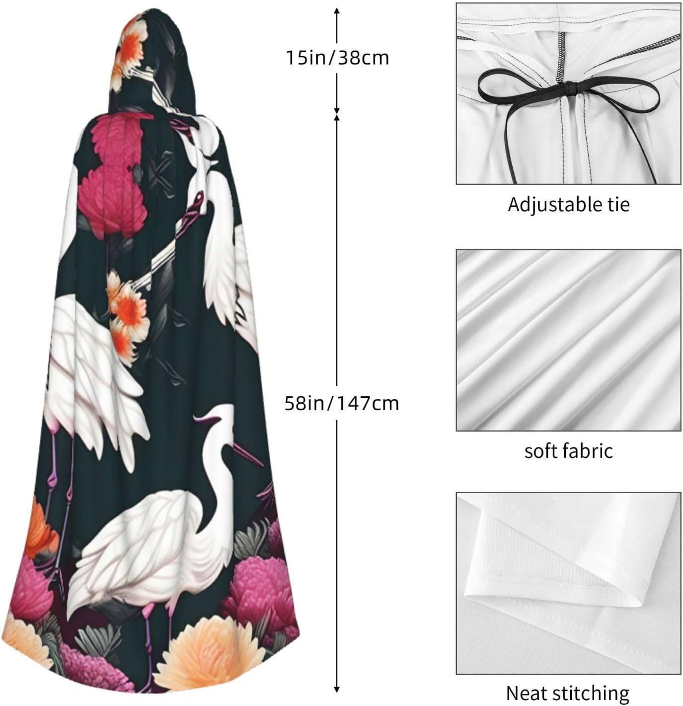 Ruba lo spettacolo a qualsiasi evento di Halloween o a tema con il nostro mantello con cappuccio. Realizzato con un tessuto confortevole, non pruriginoso, questo mantello con stampa crisantemo a due gru è progettato per assicurarti di distinguerti tra la folla. Il mantello è facile da indossare e togliere, grazie alla cravatta e all'assenza di una cerniera. Con un design facile da pulire, può essere lavato in lavatrice o a mano per garantire che sia sempre pronto per il tuo prossimo evento. Prova la perfetta miscela di comfort, stile e versatilità con il nostro mantello con cappuccio.