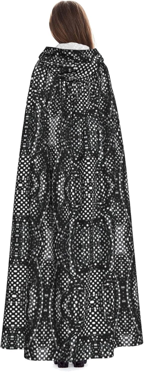 Materiale e design a pois ondulati bianchi e neri: il tessuto è realizzato in 100% fibra di poliestere (poliestere) tessuto di alta qualità, morbido e confortevole. Il design con cappuccio non è solo elegante e bello, ma fornisce anche calore extra alla testa e al collo. Caratteristiche del prodotto: il poncho oversize con cappuccio è un poncho con cappuccio senza lacci, senza cerniera, comodo realizzato in tessuto lungo, resistente e non prurito. Dimensioni del prodotto: il cappello misura 38,1 cm di altezza, 147,3 cm di lunghezza, 154 cm di larghezza. Adatto per occasioni: feste di Natale, feste di Halloween, feste in costume, celebrazioni pagane. Ideale per travestimenti, cosplay, costumi da scena, streghe, vampiri, royalty, scelta regalo perfetta per amici o familiari. Persone applicabili: adulti, unisex