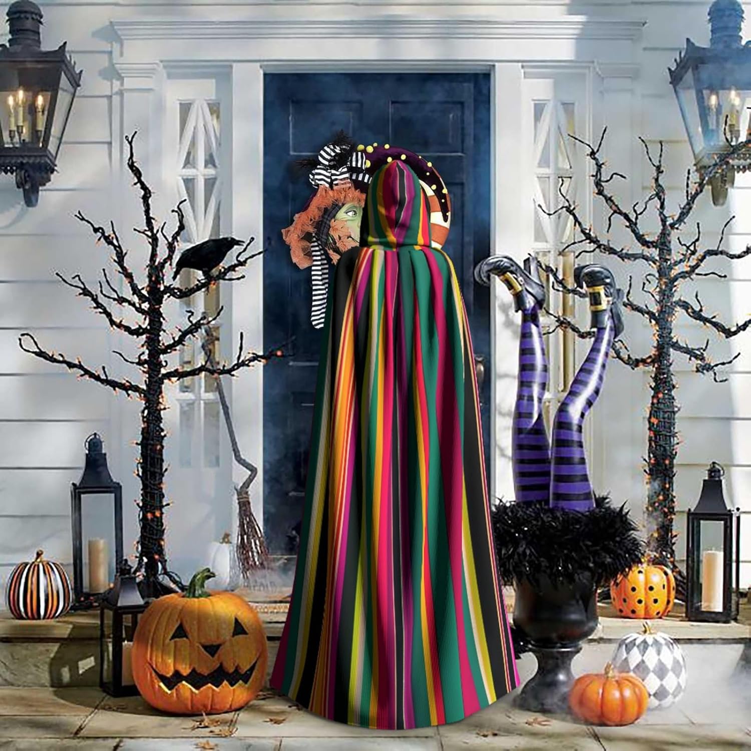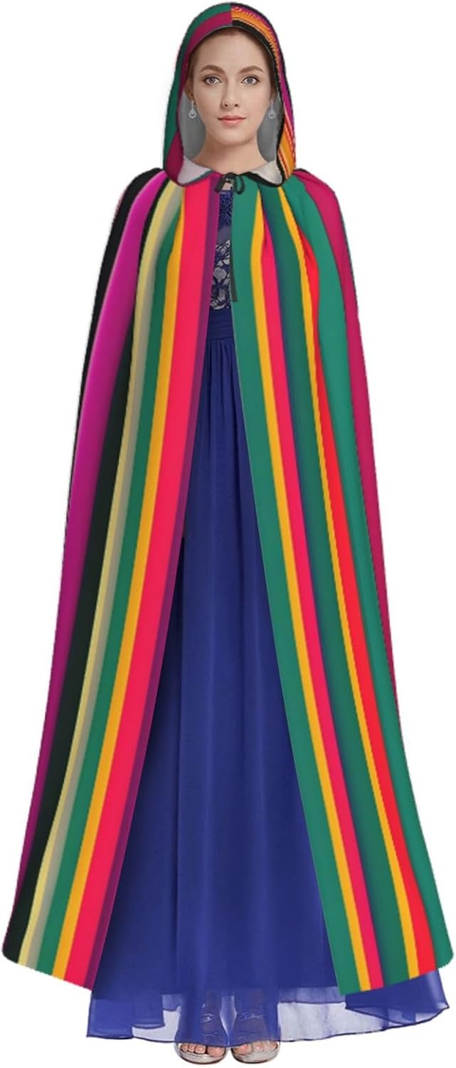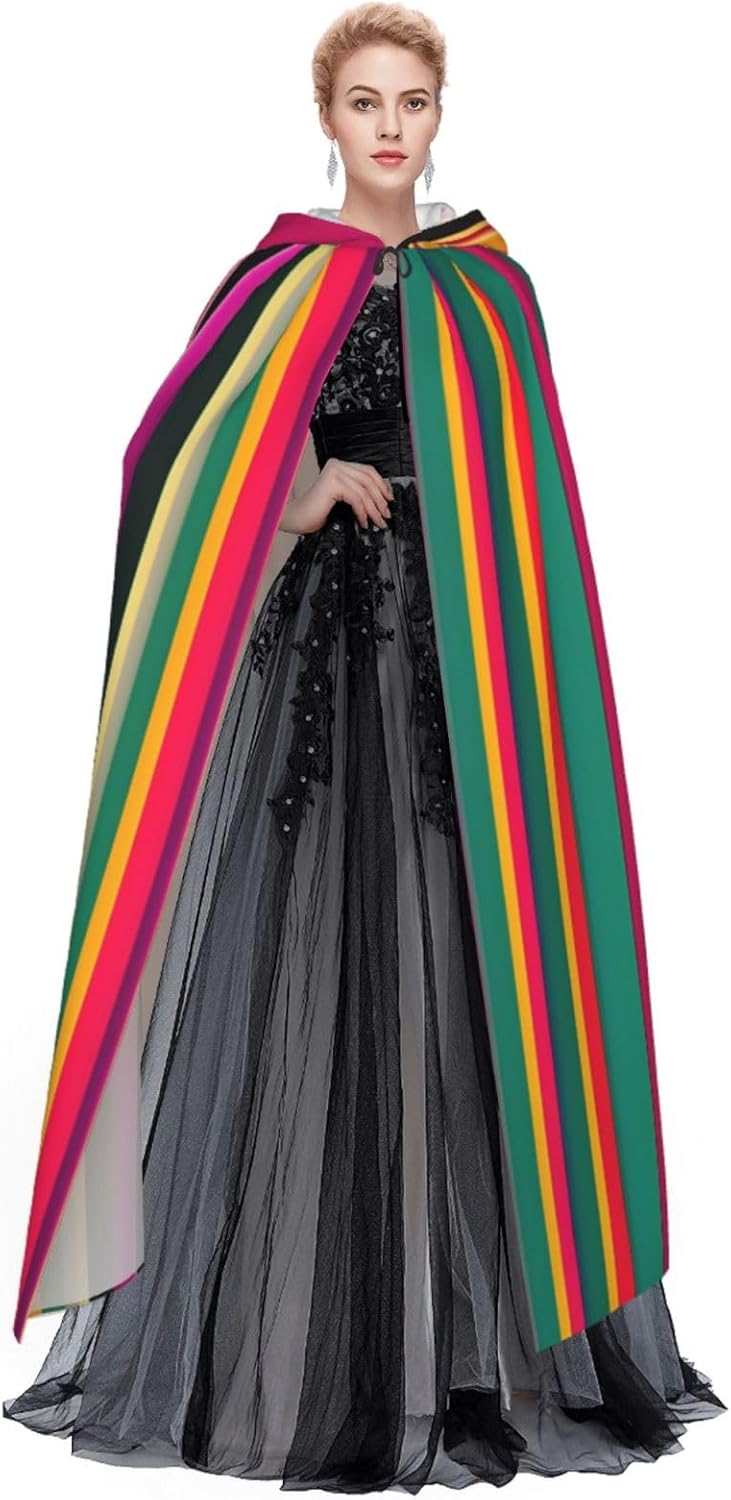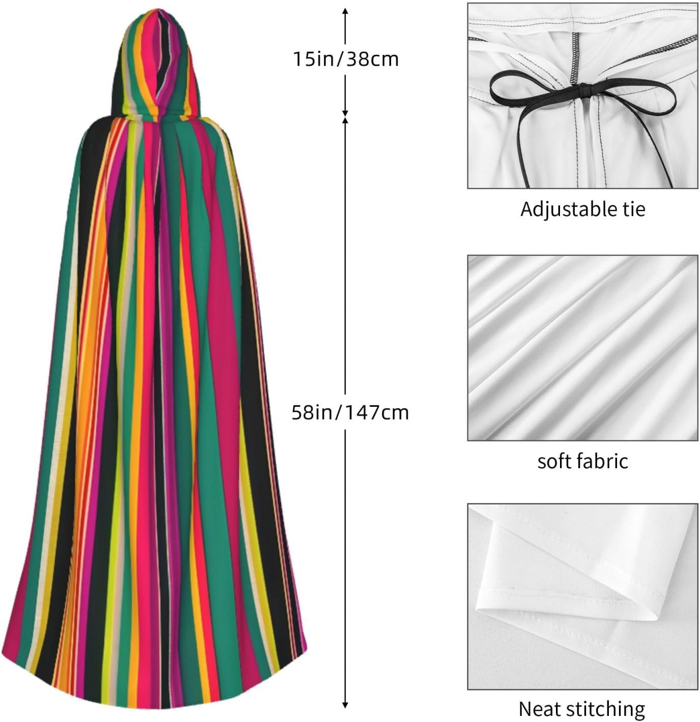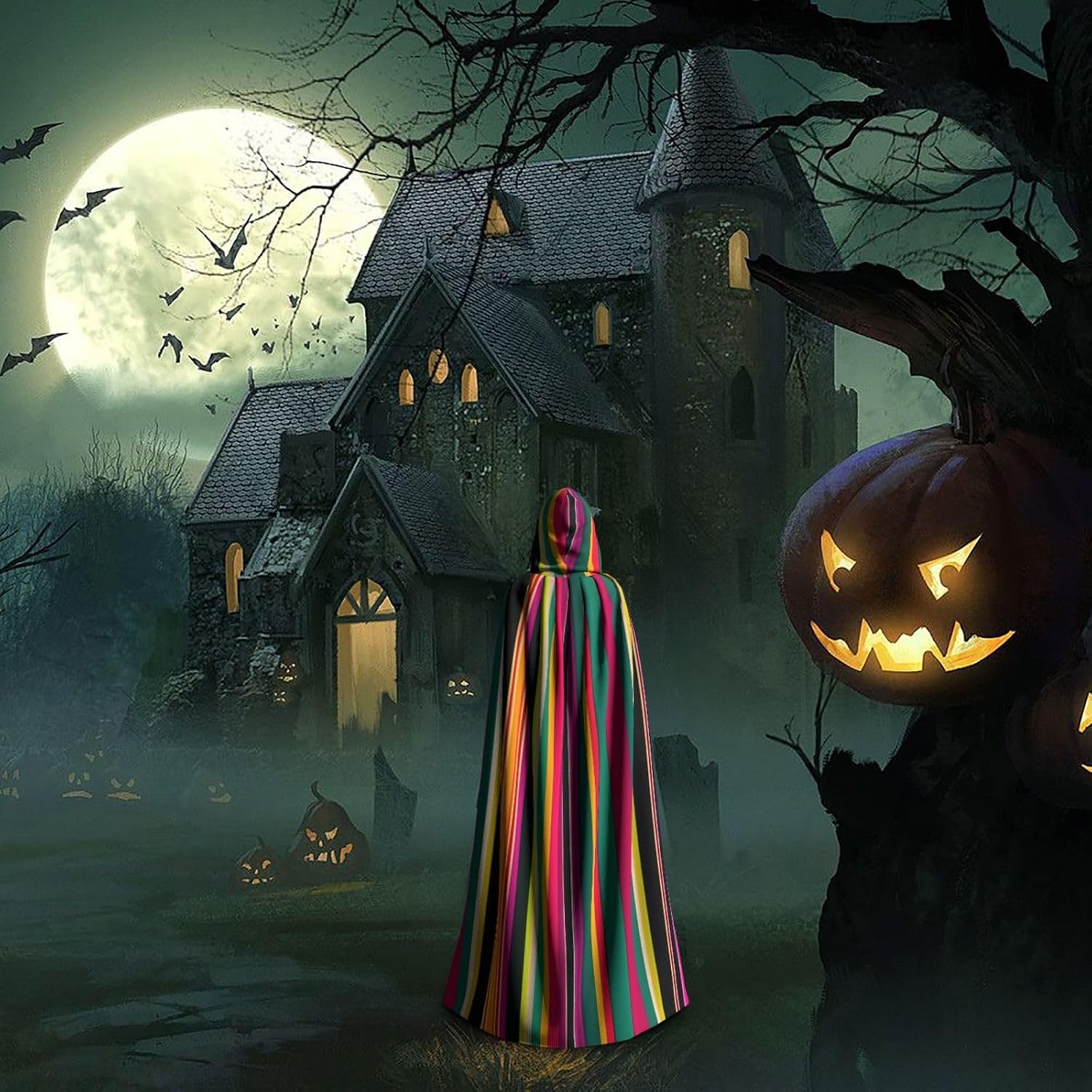 Ruba lo spettacolo a qualsiasi evento di Halloween o a tema con il nostro mantello con cappuccio. Realizzato con un tessuto confortevole, non pruriginoso, questo mantello con stampa a righe color arcobaleno è progettato per assicurarti di distinguerti tra la folla. Il mantello è facile da indossare e togliere, grazie alla cravatta e all'assenza di una cerniera. Con un design facile da pulire, può essere lavato in lavatrice o a mano per garantire che sia sempre pronto per il tuo prossimo evento. Prova la perfetta miscela di comfort, stile e versatilità con il nostro mantello con cappuccio.