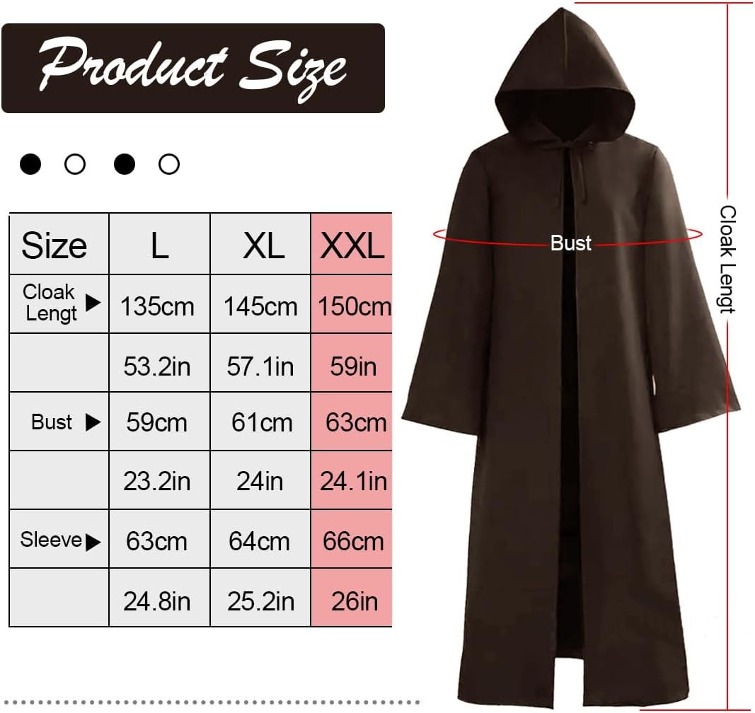 【Contenuto della confezione】 Questo costume da samurai di Halloween ha un design con cappuccio. Ci sono due colori: nero e marrone. Le taglie sono L, XL e XXL. Si prega di scegliere in base alla dimensione nell'immagine. 【Scenari di utilizzo】 Questo mantello cosplay di Halloween è perfetto per costumi teatrali, costumi cosplay di Halloween, costumi da mago, feste in costume, spettacoli teatrali, costumi di carnevale ed eventi cosplay. 【Design speciale】 L'abito di Halloween adotta un design simile a un mantello che rende il tuo viso più nascosto e misterioso, facile da indossare e da togliere. 【Tessuto di alta qualità】 Questo mantello con cappuccio di Halloween è realizzato in tessuto di alta qualità, durevole, resistente allo sbiadimento e comodo da indossare. 【Servizio clienti】 Se hai domande sui nostri prodotti, contattaci e ti risponderemo in tempo.