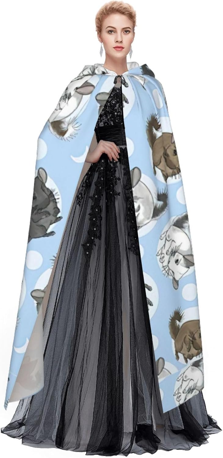 Mantello con cappuccio blu con cincillà e luna, per adulti, elegante, per carnevale, feste a tema, cosplay