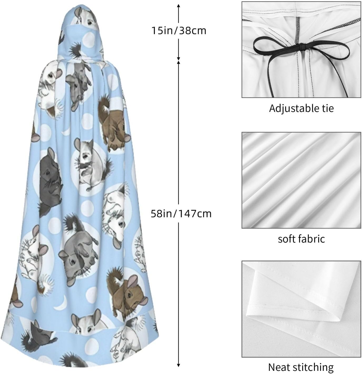 Trasforma le tue feste in costume con il nostro drammatico mantello con cappuccio di Halloween per adulti. Il design a stampa completa prepara le basi per un'esperienza festiva indimenticabile. Realizzato in fibra di poliestere di alta qualità, il nostro mantello garantisce comfort ed è morbido al tatto, eliminando qualsiasi possibilità di prurito. Le dimensioni extra-large e il design con cravatta rendono questo mantello facile da indossare, e la sua versatilità si adatta a una vasta gamma di eventi - da feste di Halloween, feste in maschera, fumetti e carnevali. Con una caratteristica di facile manutenzione, compatibile sia in lavatrice che a mano, il mantello rimane fresco per ogni celebrazione. Scegli il nostro mantello unisex con cappuccio per un ensemble che ti assicura di distinguerti ad ogni festa.