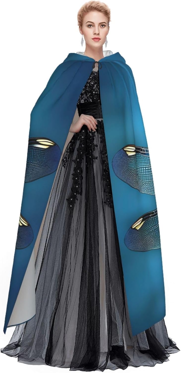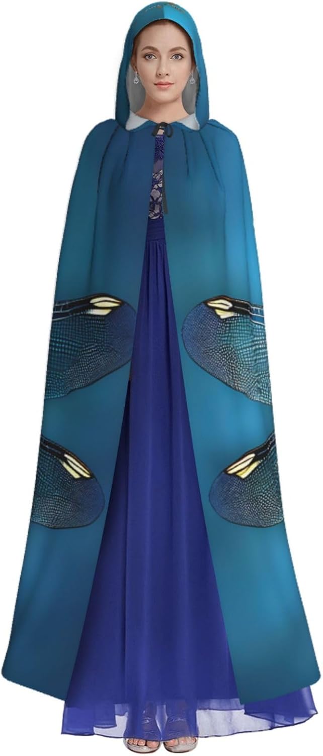 Il mantello con cappuccio per Halloween è realizzato con tessuto in poliestere morbido anche sulla pelle, prevenendo qualsiasi irritazione. Il mantello presenta un ampio cappuccio e uno stile annodato senza cerniere per un design sofisticato ed elegante. Con la sua dimensione universale, offre una copertura completa, adatta a tutti, assicurandoti di distinguerti tra la folla. Questo mantello blu con stampa con motivo Odonata non è solo per Halloween; è abbastanza versatile per cosplay, spettacoli teatrali, balli in maschera, feste a tema e molto altro ancora.