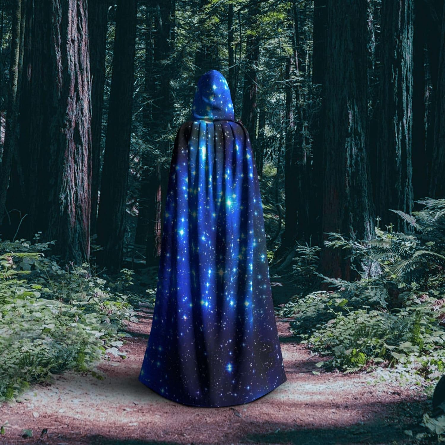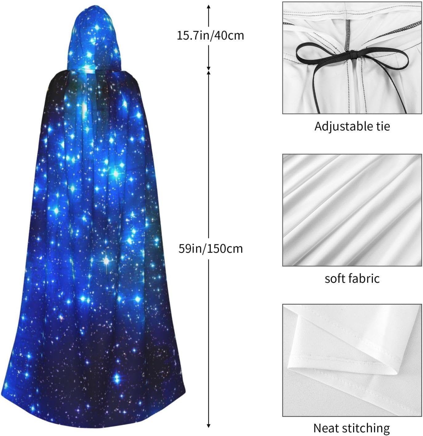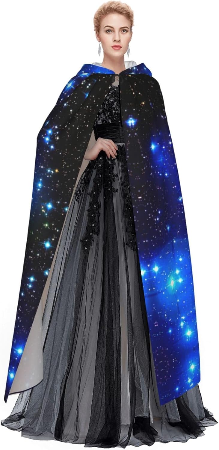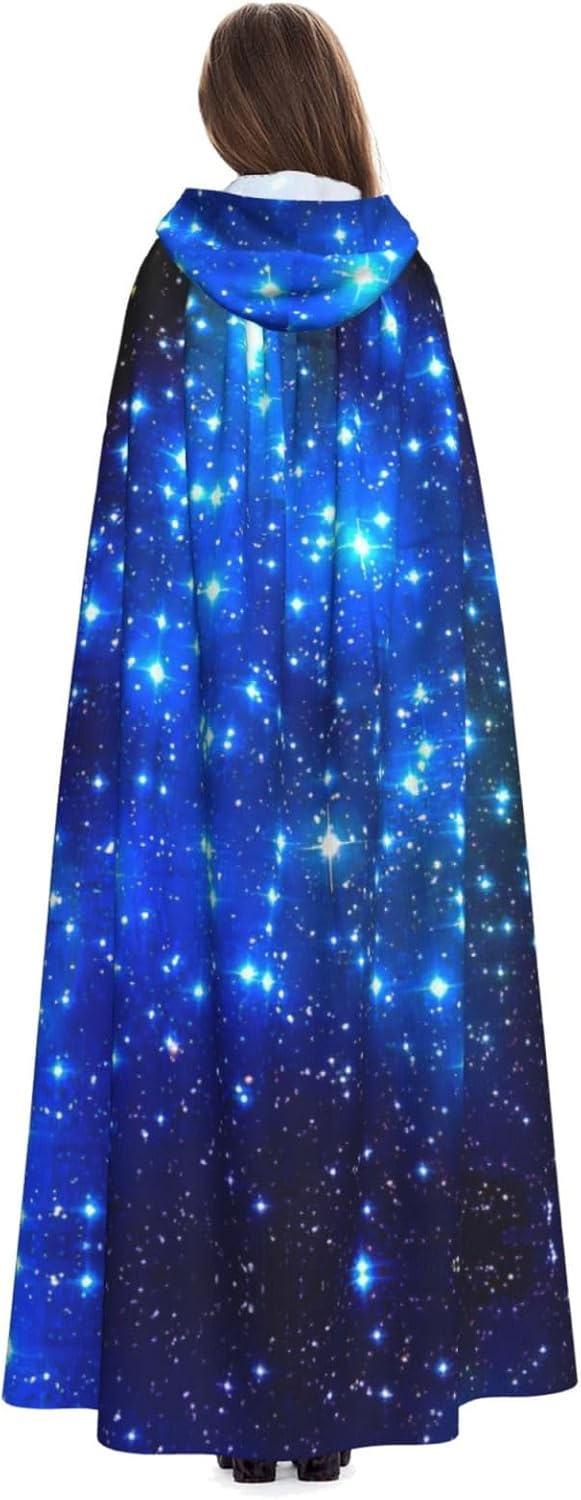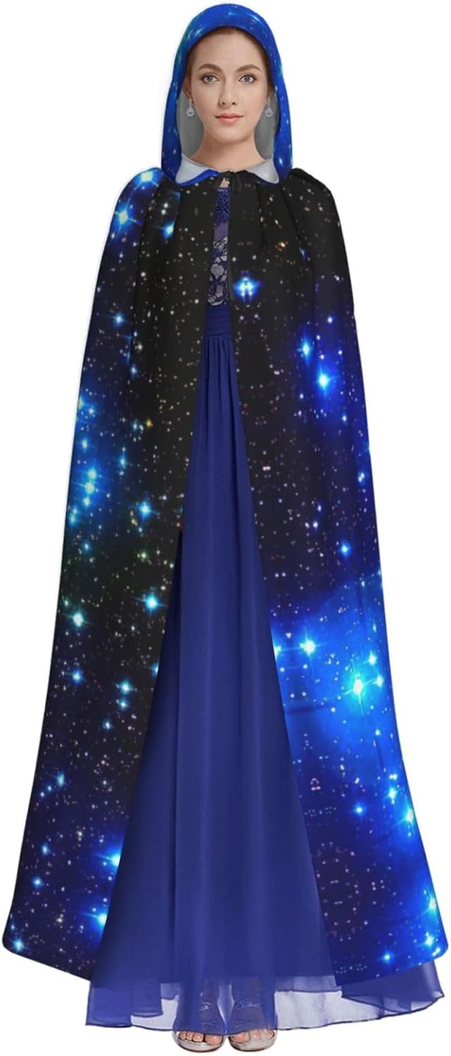Mantello con cappuccio blu con stampa stelle brillanti per tutti i costumi cosplay unisex decorazione di Halloween forniture di carnevale