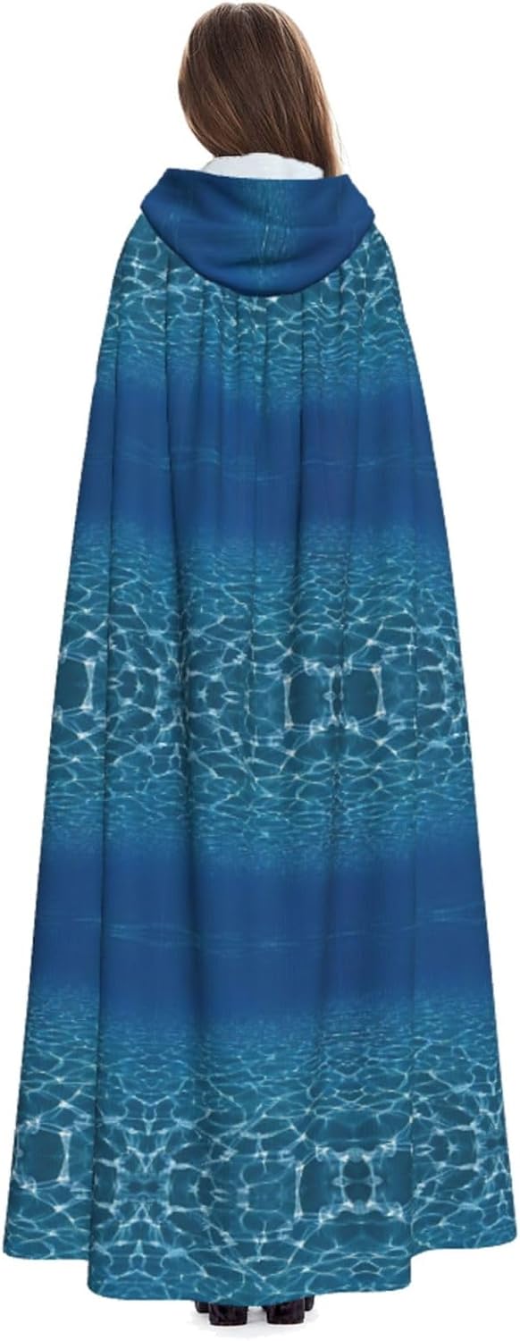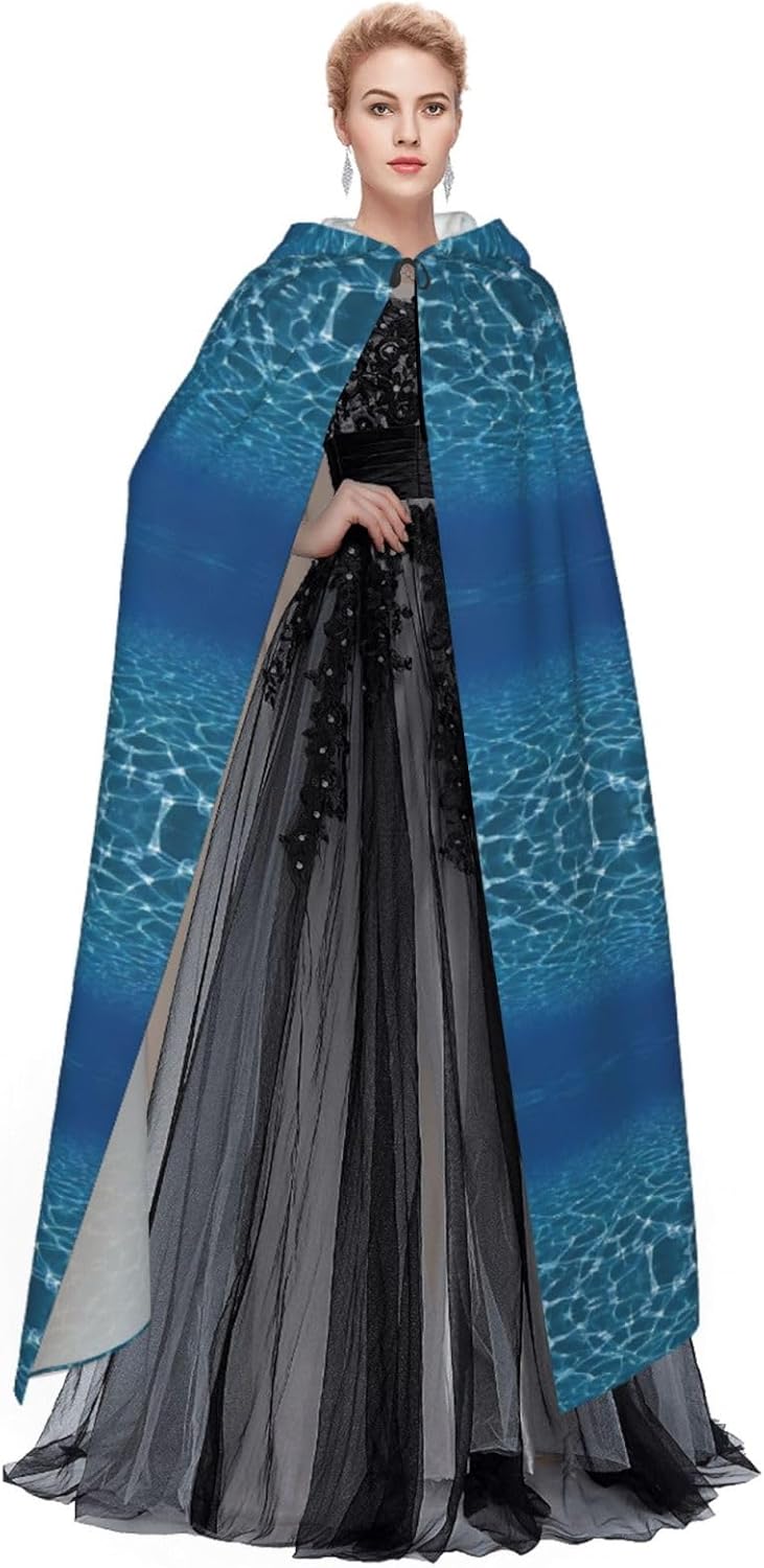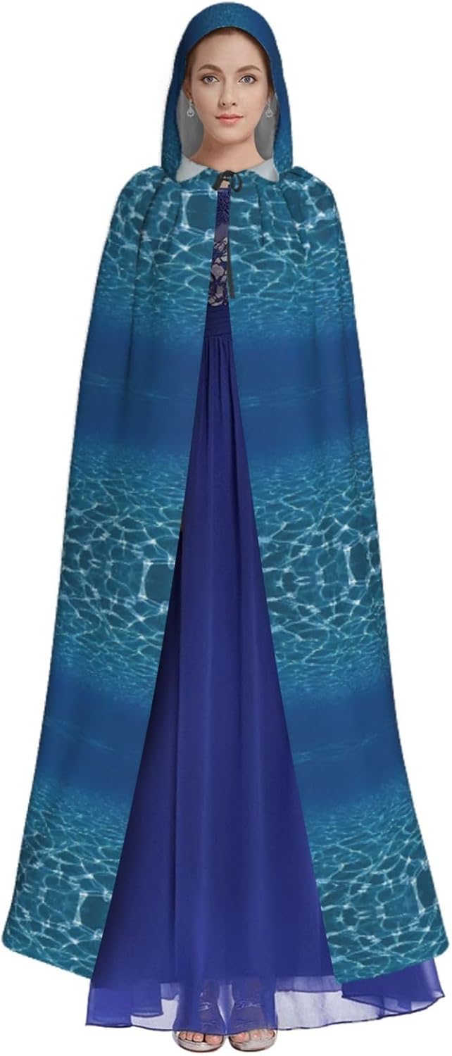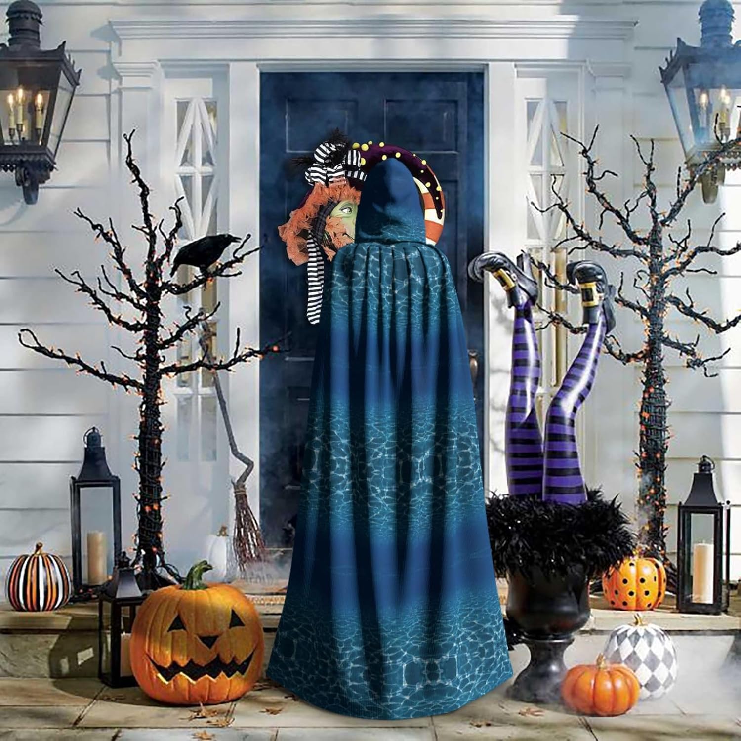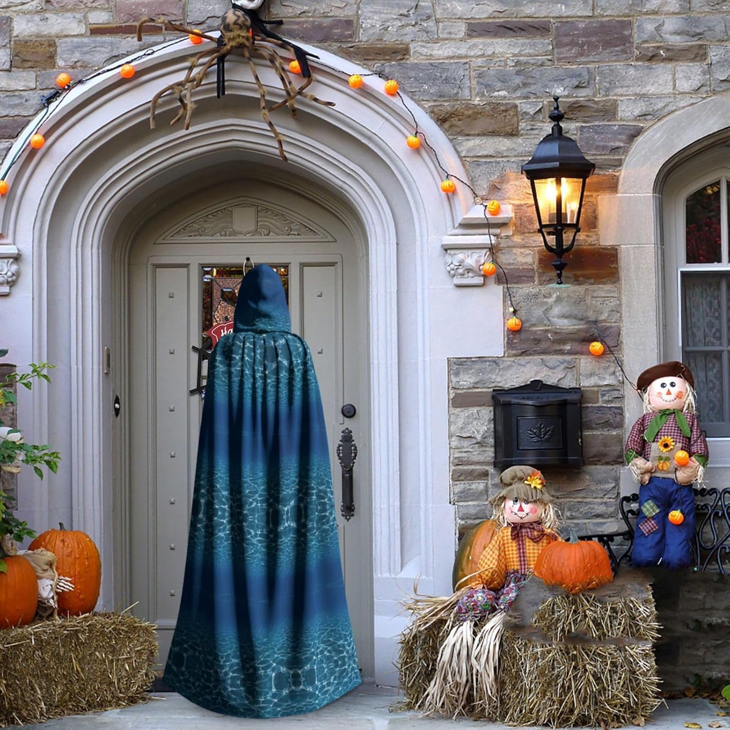 Mantello con cappuccio blu mare profondo unisex Halloween Natale mantello vampiro mago vestaglia costume cosplay