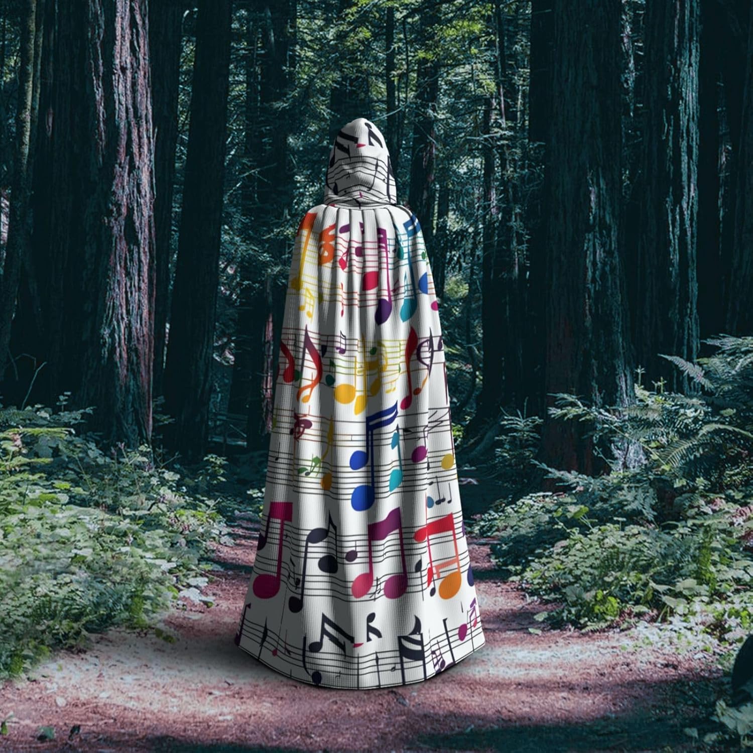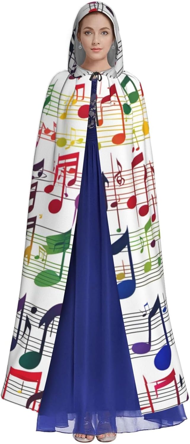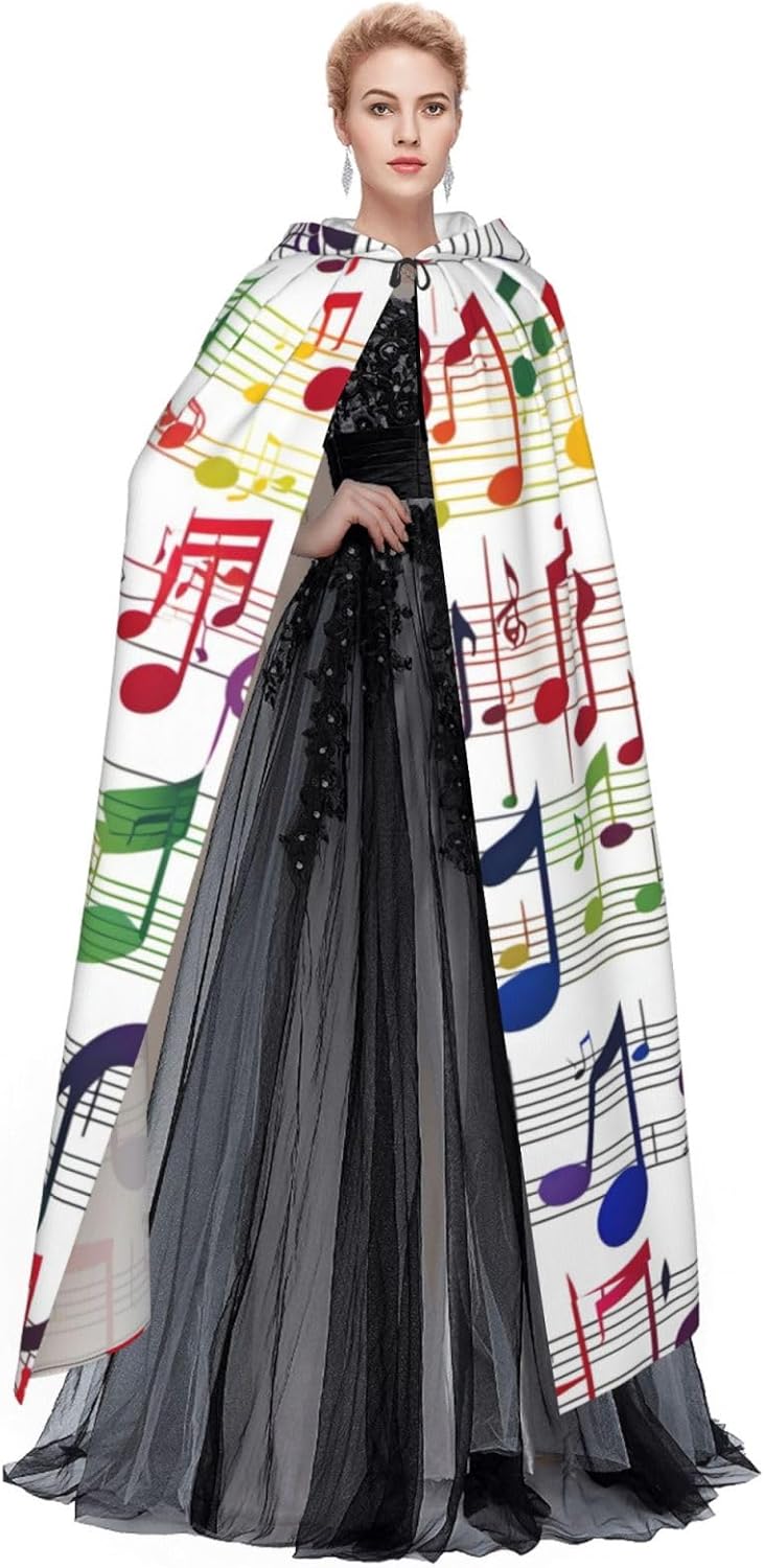 Mantello con cappuccio colorato con stampa note musicali per tutti i costumi cosplay unisex decorazione Halloween forniture di carnevale