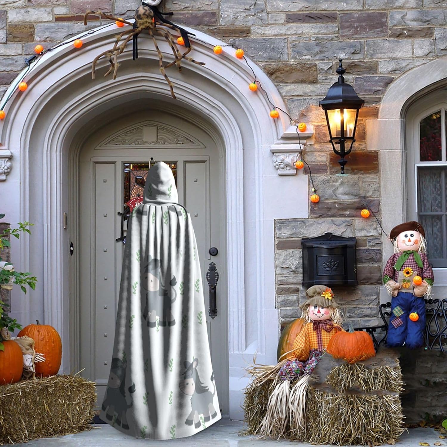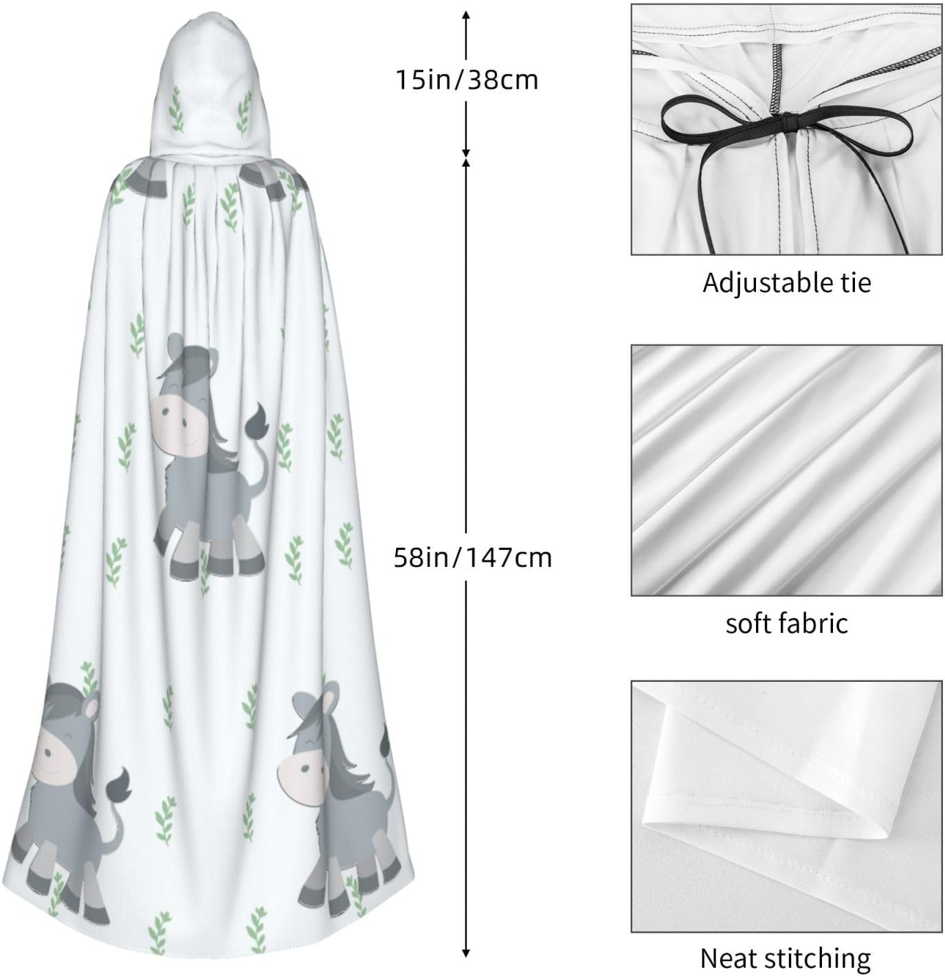 Materiale e design dell'asino sorridente: il tessuto è realizzato in 100% fibra di poliestere (poliestere) tessuto di alta qualità, morbido e confortevole. Il design con cappuccio non è solo elegante e bello, ma fornisce anche calore extra alla testa e al collo. \r Caratteristiche del prodotto: il poncho oversize con cappuccio è un poncho con cappuccio senza lacci, senza cerniera, comodo realizzato in tessuto lungo, resistente e non prurito. \r Dimensioni del prodotto: il cappello misura 38,1 cm di altezza, 147,3 cm di lunghezza, 154 cm di larghezza. \r Adatto per occasioni: feste di Natale, feste di Halloween, feste in costume, celebrazioni pagane. Ideale per travestimenti, cosplay, costumi da scena, streghe, vampiri, royalty, scelta regalo perfetta per amici o familiari. \r Persone applicabili: adulti, unisex.