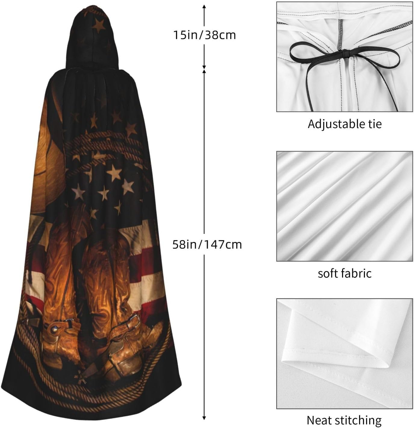 Migliora il tuo gioco di costumi con la bandiera americana con gli stivali da cowboy stampati per adulti: un'aggiunta versatile ed elegante al tuo guardaroba. Realizzato al 100% in poliestere, questo mantello offre una consistenza morbida e liscia che garantisce comfort durante tutto l'evento. La generosa lunghezza di 147 cm e l'altezza del cappuccio di 38 cm lo rendono adatto alla maggior parte degli adulti, offrendo una vestibilità perfetta sia per gli uomini che per le donne. Il mantello da uomo con cappuccio e chiusura a laccio lo rende facile da indossare e regolare, garantendo una vestibilità sicura e confortevole. Che tu stia partecipando a una fiera rinascimentale, a una festa di Halloween, a un raduno di Natale o a un evento a tema medievale, questo mantello aggiungerà un tocco di eleganza e autenticità al tuo outfit. Ideale per una vasta gamma di occasioni, tra cui cosplay, balli in maschera e feste a tema, questo mantello da ballo in maschera è anche una scelta fantastica per costumi gotici, da vampiro, da strega e da mago. Abbraccia lo spirito del Medioevo o aggiungi un tocco di mistero al tuo prossimo evento con il mantello con cappuccio per Halloween per adulti. Ordina il tuo oggi ed entra nel mondo dello stile e dell'incanto senza tempo