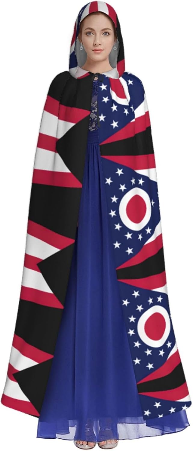 Mantello con cappuccio con bandiera dell'Ohio mantello medievale per Halloween mantello da mago mantello nero per adulti costume da strega