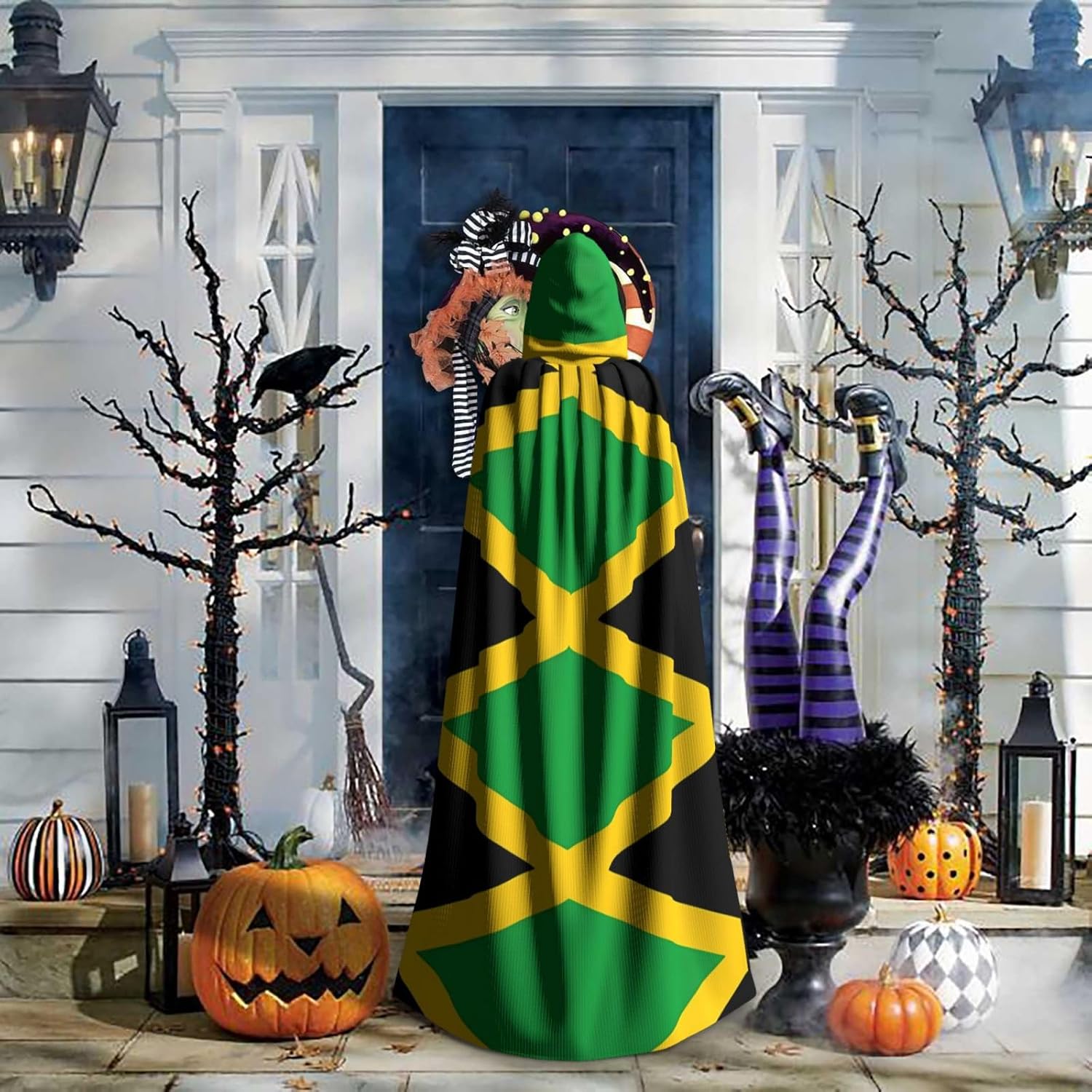 Materiale e design della bandiera della Giamaica: il tessuto è realizzato in 100% fibra di poliestere (poliestere) tessuto di alta qualità, morbido e confortevole. Il design con cappuccio non è solo elegante e bello, ma fornisce anche calore extra alla testa e al collo. \r Caratteristiche del prodotto: il poncho oversize con cappuccio è un poncho con cappuccio senza lacci, senza cerniera, comodo realizzato in tessuto lungo, resistente e non prurito. \r Dimensioni del prodotto: il cappello misura 38,1 cm di altezza, 147,3 cm di lunghezza, 154 cm di larghezza. \r Adatto per occasioni: feste di Natale, feste di Halloween, feste in costume, celebrazioni pagane. Ideale per travestimenti, cosplay, costumi da scena, streghe, vampiri, royalty, scelta regalo perfetta per amici o familiari. \r Persone applicabili: adulti, unisex.
