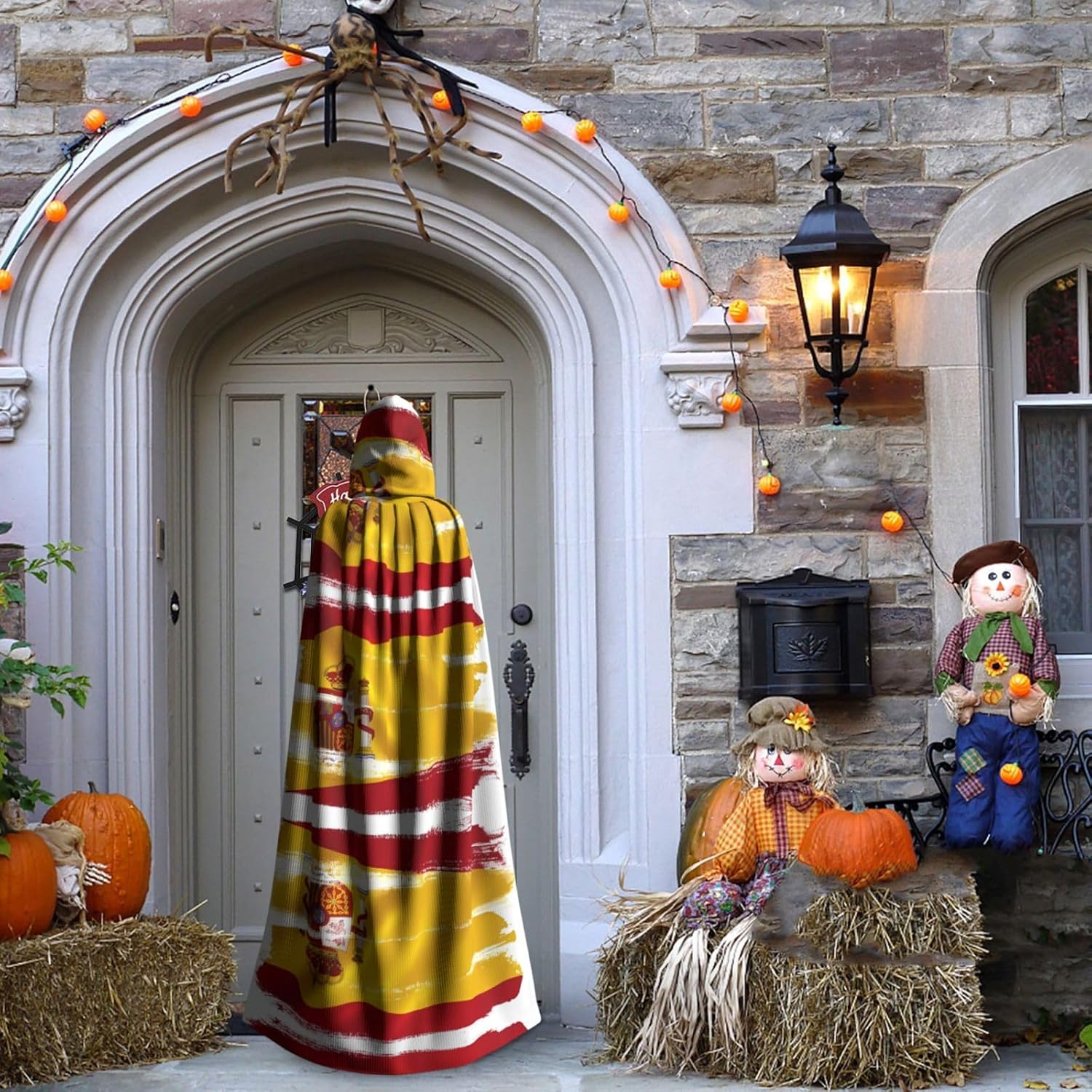 Materiale e design della bandiera della Spagna: il tessuto è realizzato in 100% fibra di poliestere (poliestere) tessuto di alta qualità, morbido e confortevole. Il design con cappuccio non è solo elegante e bello, ma fornisce anche calore extra alla testa e al collo. \r Caratteristiche del prodotto: il poncho oversize con cappuccio è un poncho con cappuccio senza lacci, senza cerniera, comodo realizzato in tessuto lungo, resistente e non prurito. \r Dimensioni del prodotto: il cappello misura 38,1 cm di altezza, 147,3 cm di lunghezza, 154 cm di larghezza. \r Adatto per occasioni: feste di Natale, feste di Halloween, feste in costume, celebrazioni pagane. Ideale per travestimenti, cosplay, costumi da scena, streghe, vampiri, royalty, scelta regalo perfetta per amici o familiari. \r Persone applicabili: adulti, unisex.