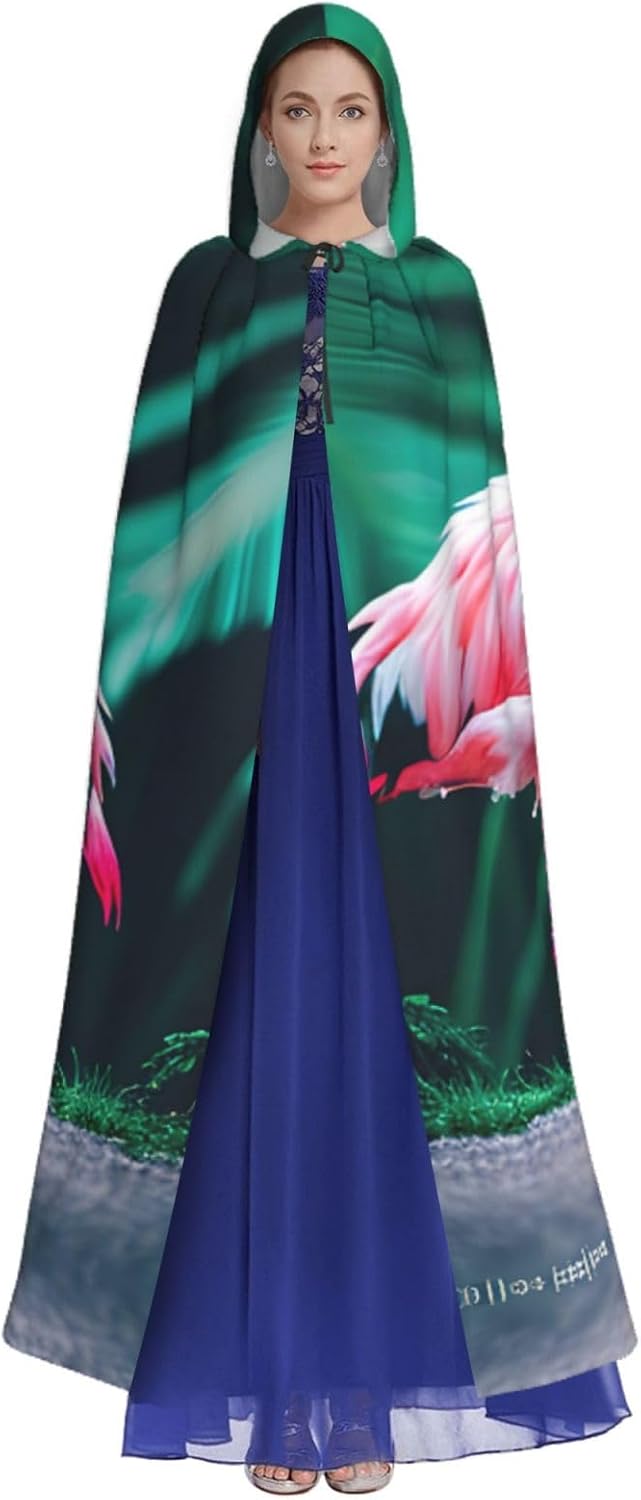 Mantello con cappuccio con due fenicotteri mantello medievale per Halloween mantello da mago mantello nero per adulti costume da strega