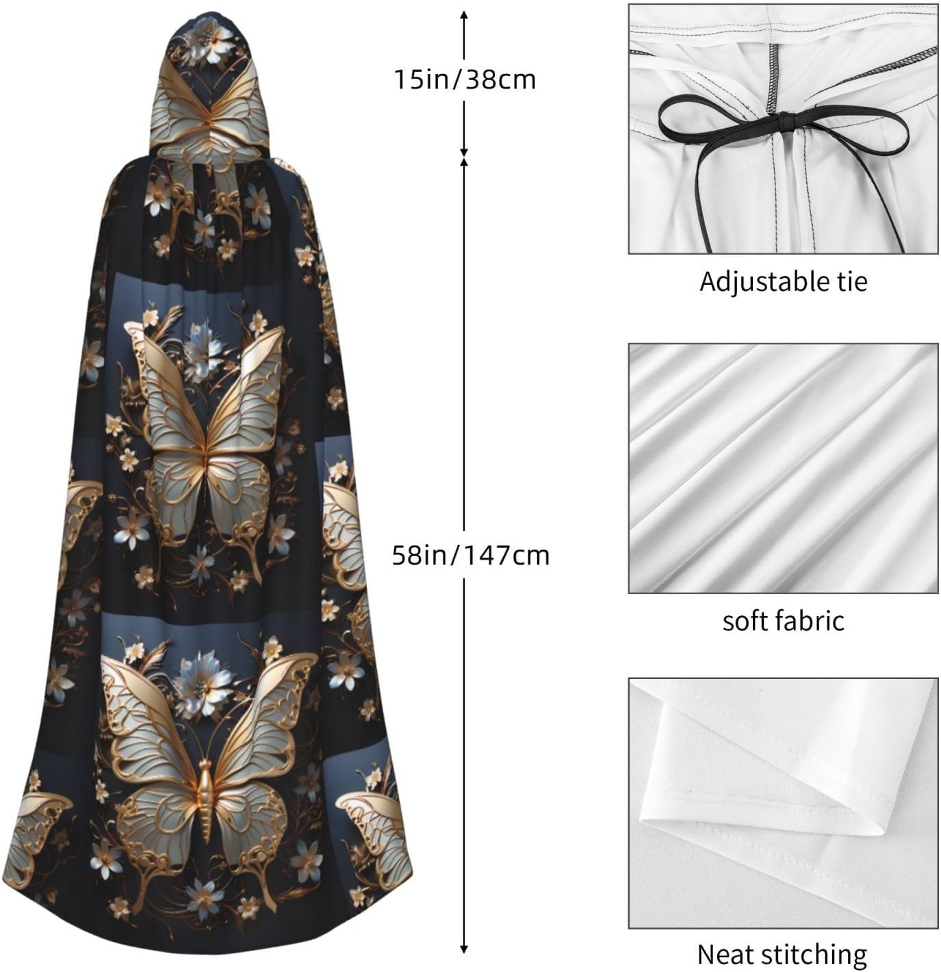 Materiale e design farfalle bianche dorate: il tessuto è realizzato in 100% fibra di poliestere (poliestere) tessuto di alta qualità, morbido e confortevole. Il design con cappuccio non è solo elegante e bello, ma fornisce anche calore extra alla testa e al collo. \r Caratteristiche del prodotto: il poncho oversize con cappuccio è un poncho con cappuccio senza lacci, senza cerniera, comodo realizzato in tessuto lungo, resistente e non prurito. \r Dimensioni del prodotto: il cappello misura 38,1 cm di altezza, 147,3 cm di lunghezza, 154 cm di larghezza. \r Adatto per occasioni: feste di Natale, feste di Halloween, feste in costume, celebrazioni pagane. Ideale per travestimenti, cosplay, costumi da scena, streghe, vampiri, royalty, scelta regalo perfetta per amici o familiari. \r Persone applicabili: adulti, unisex.