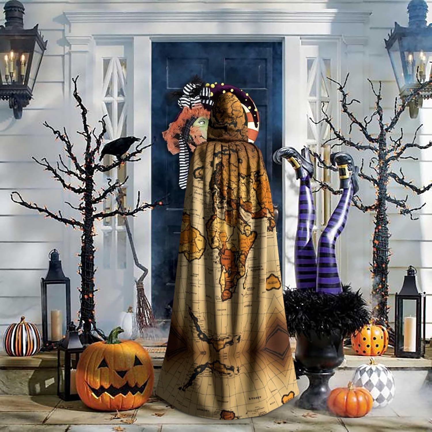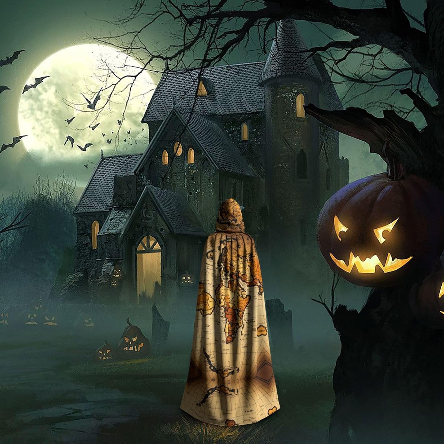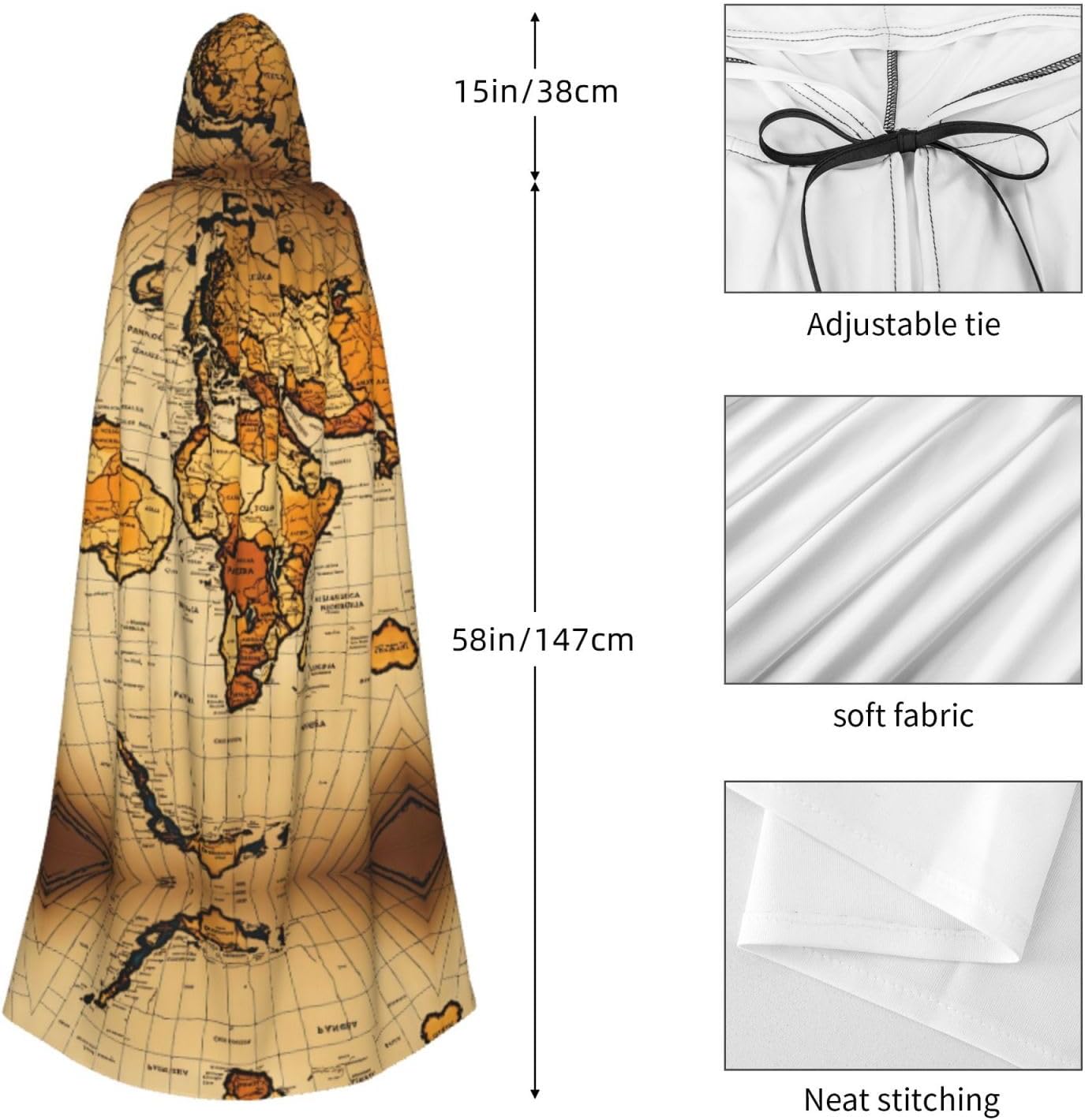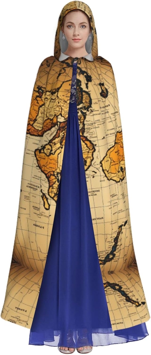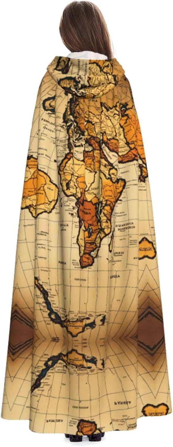Mantello con cappuccio con mappa del mondo astratta unisex Halloween Natale mantello vampiro mago vestaglia costume cosplay
