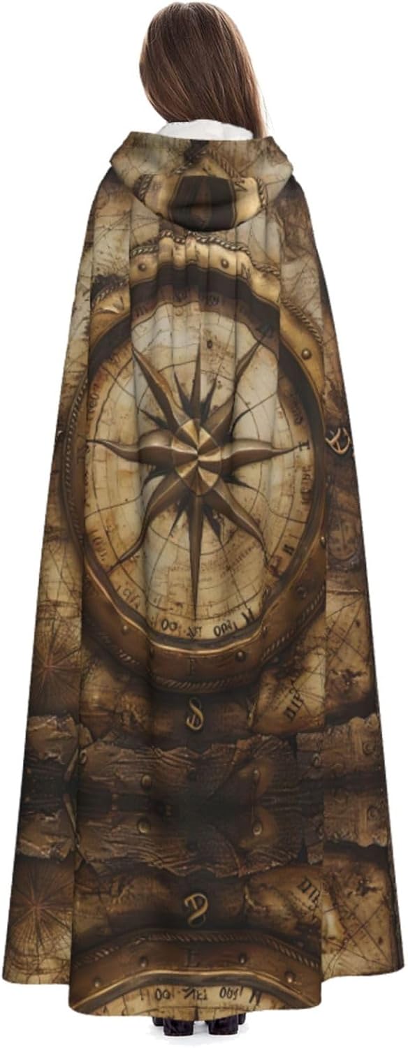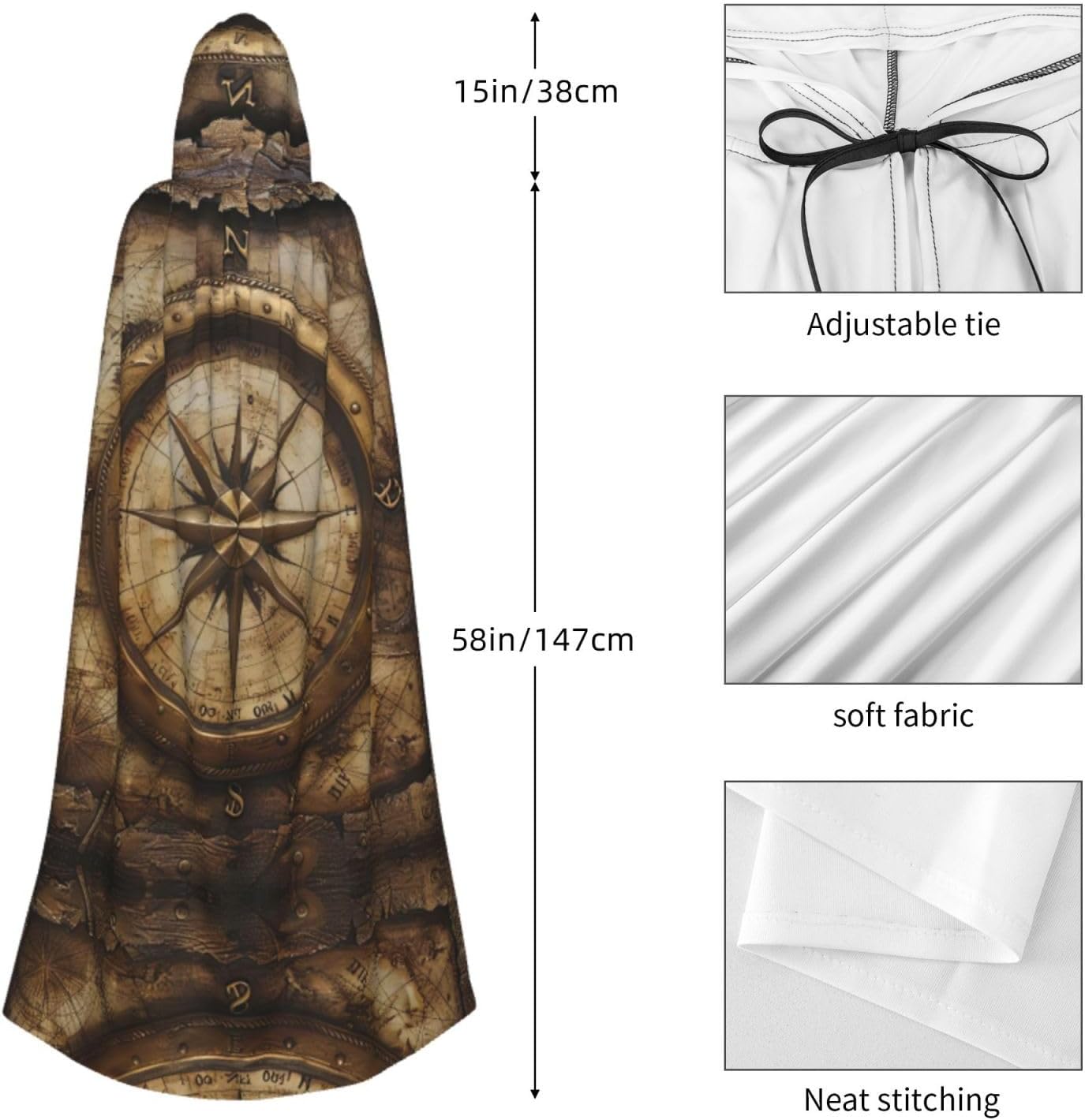 Mantello con cappuccio con mappa della bussola, mantello medievale per Halloween, mantello da mago, mantello nero, costume da strega per adulti