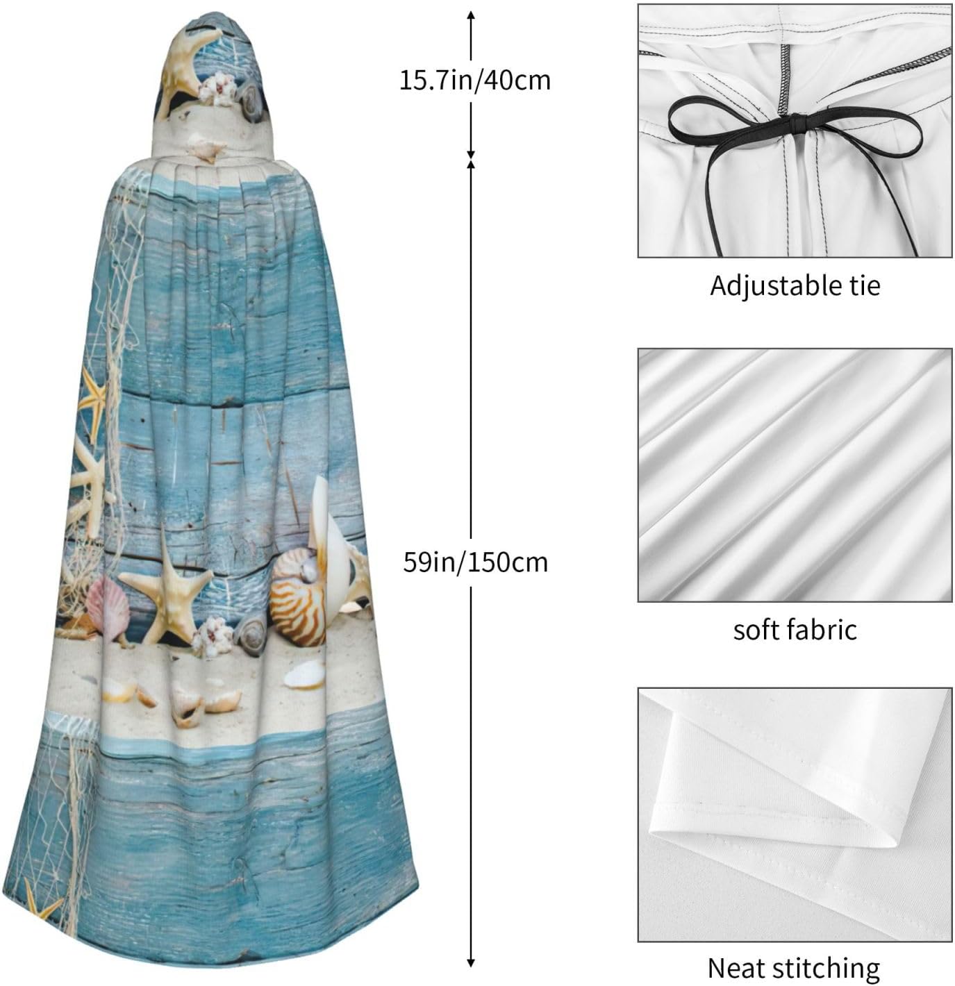 Mantello con cappuccio con stampa a forma di stella marina per tutti i costumi cosplay unisex decorazione di Halloween forniture di carnevale