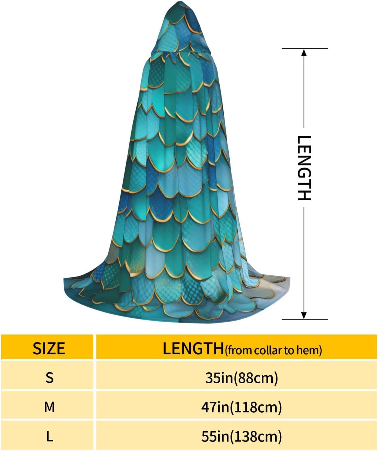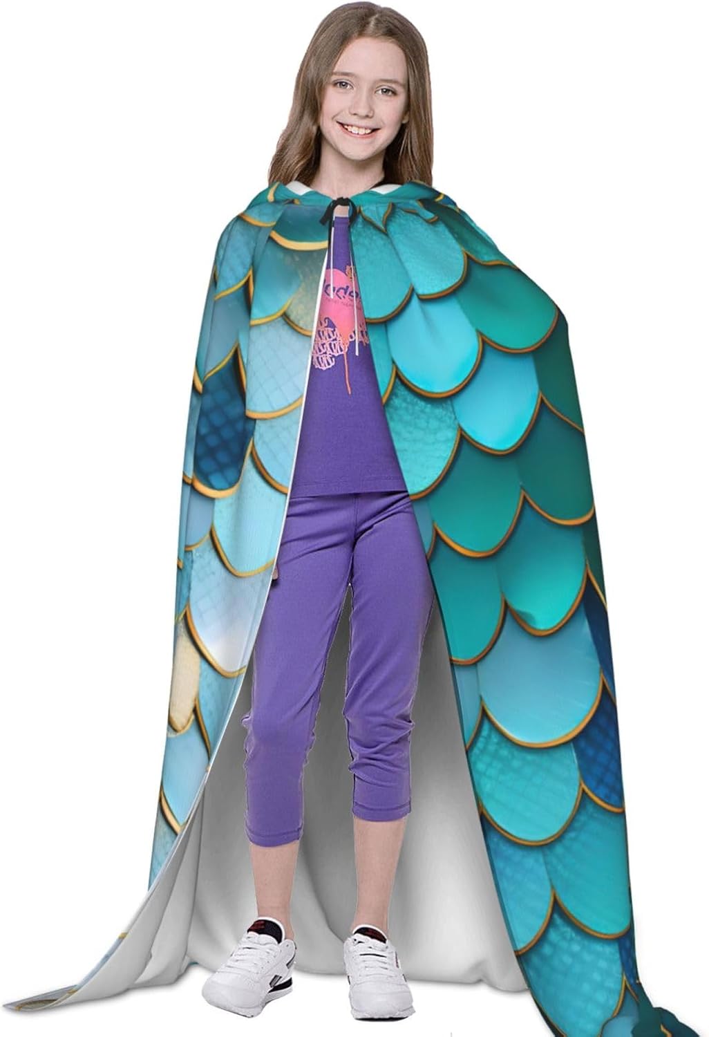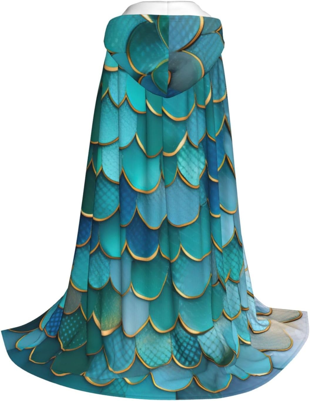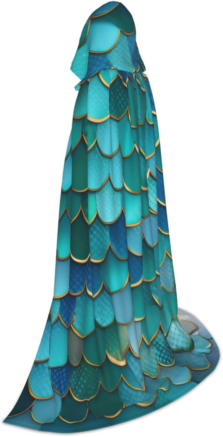 Mantello con cappuccio con stampa a squame di sirena per Halloween e Natale, costume da donna uomo adulto travestimento in maschera