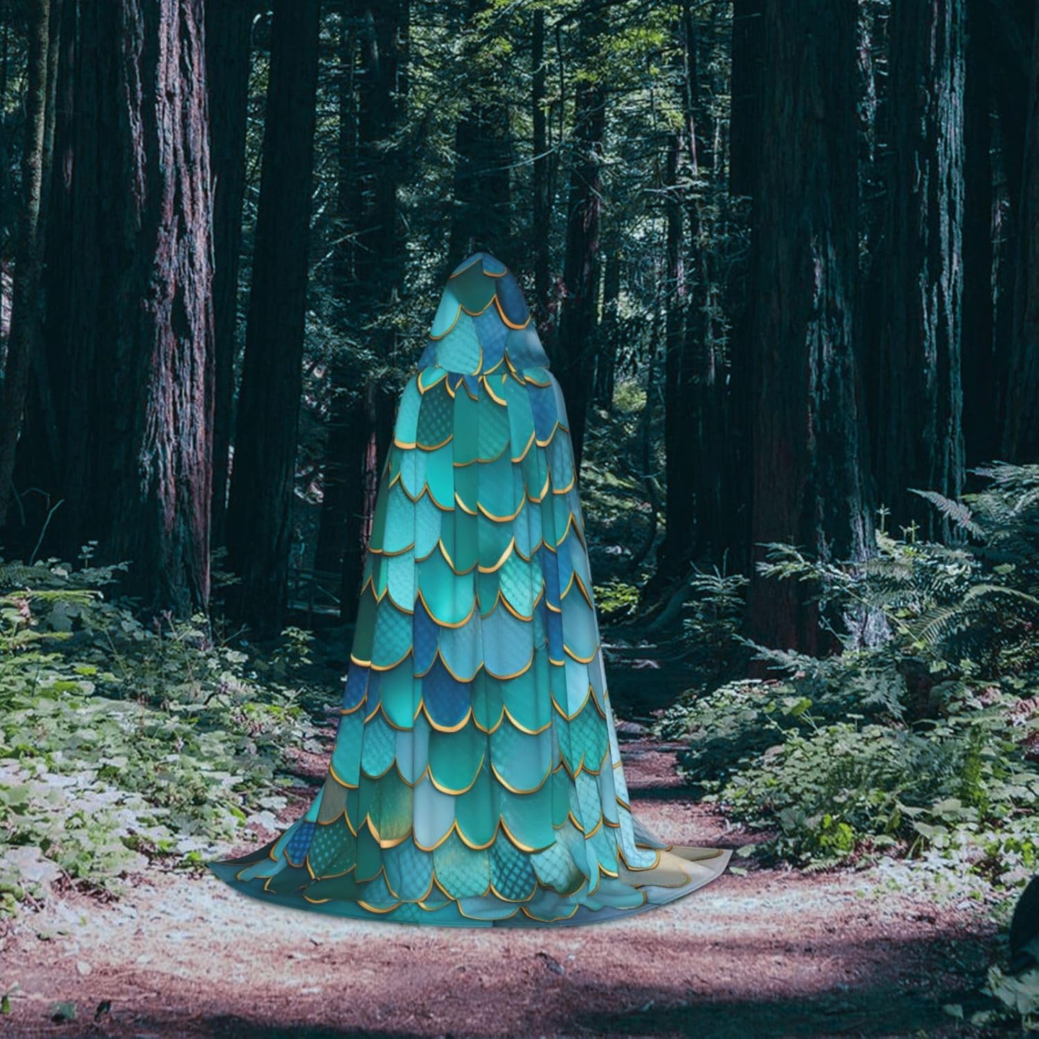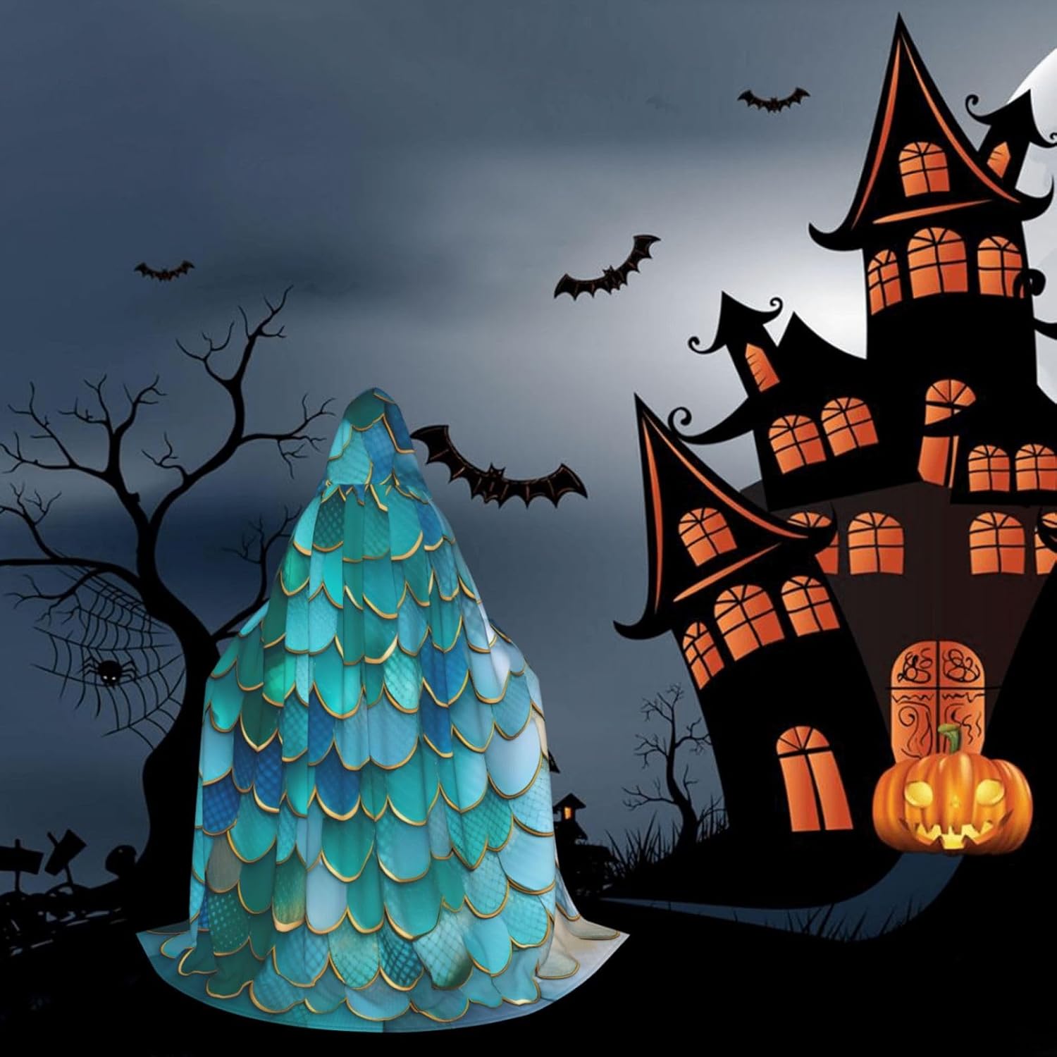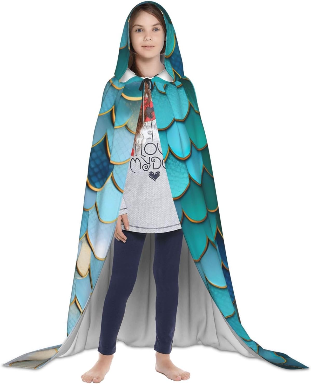 Mantello con cappuccio con stampa a squame di sirena per Halloween e Natale, costume da donna uomo adulto travestimento in maschera
