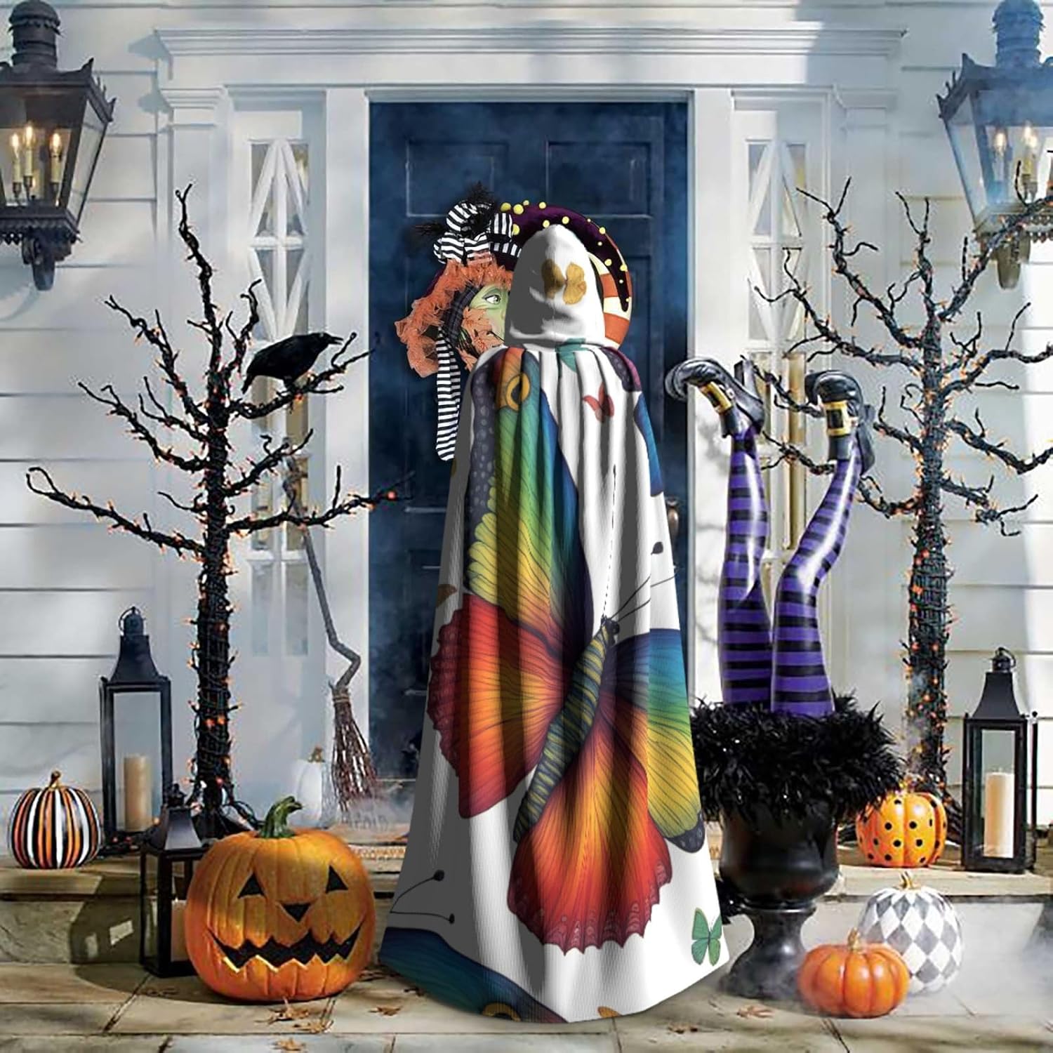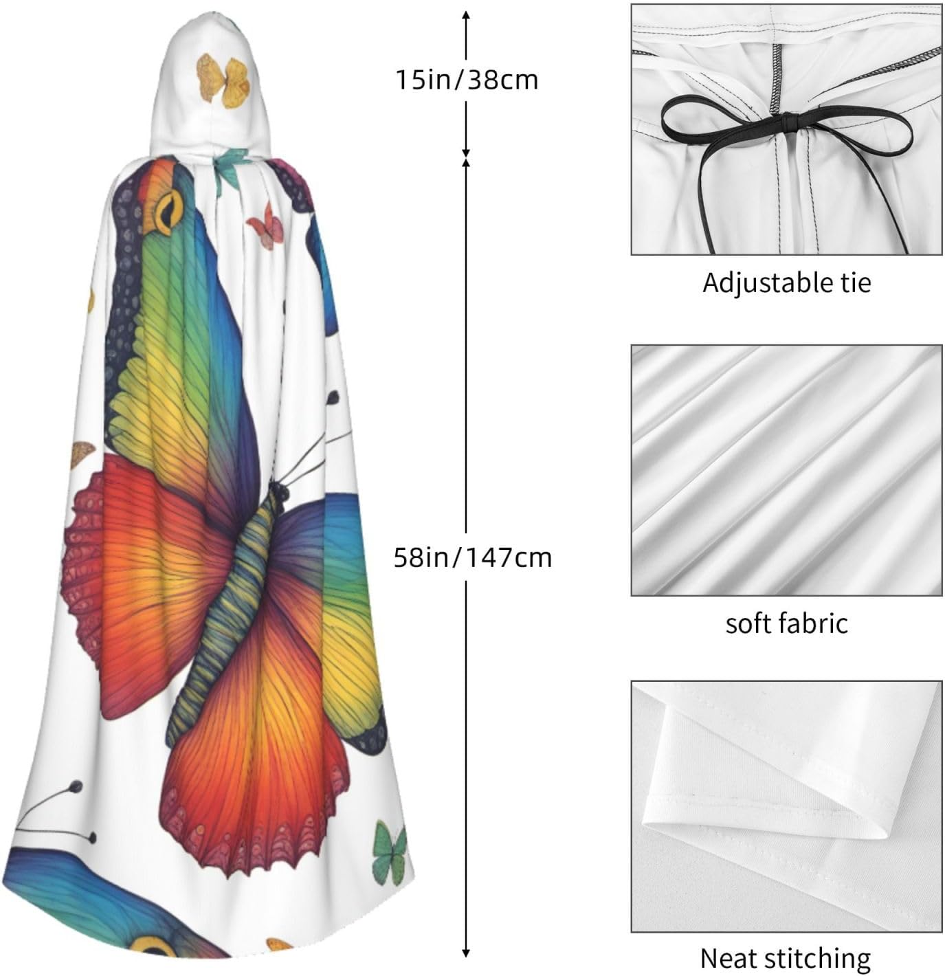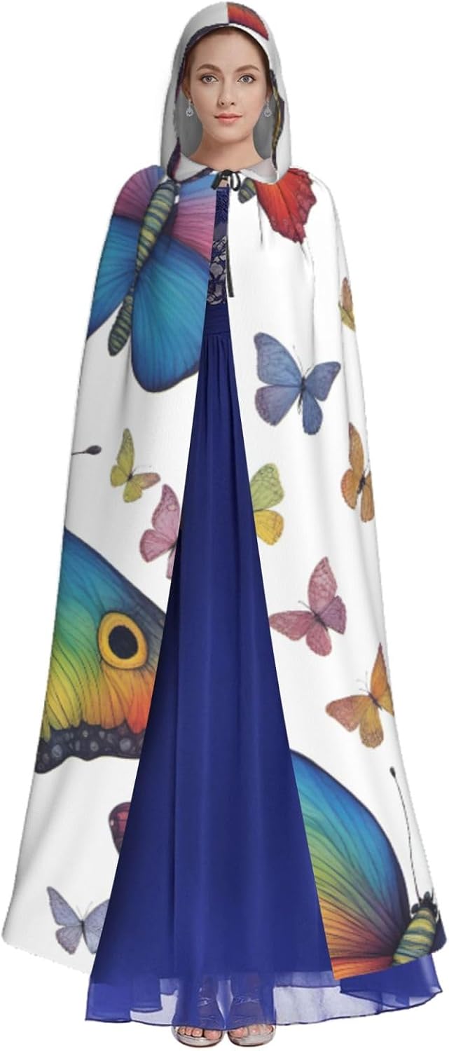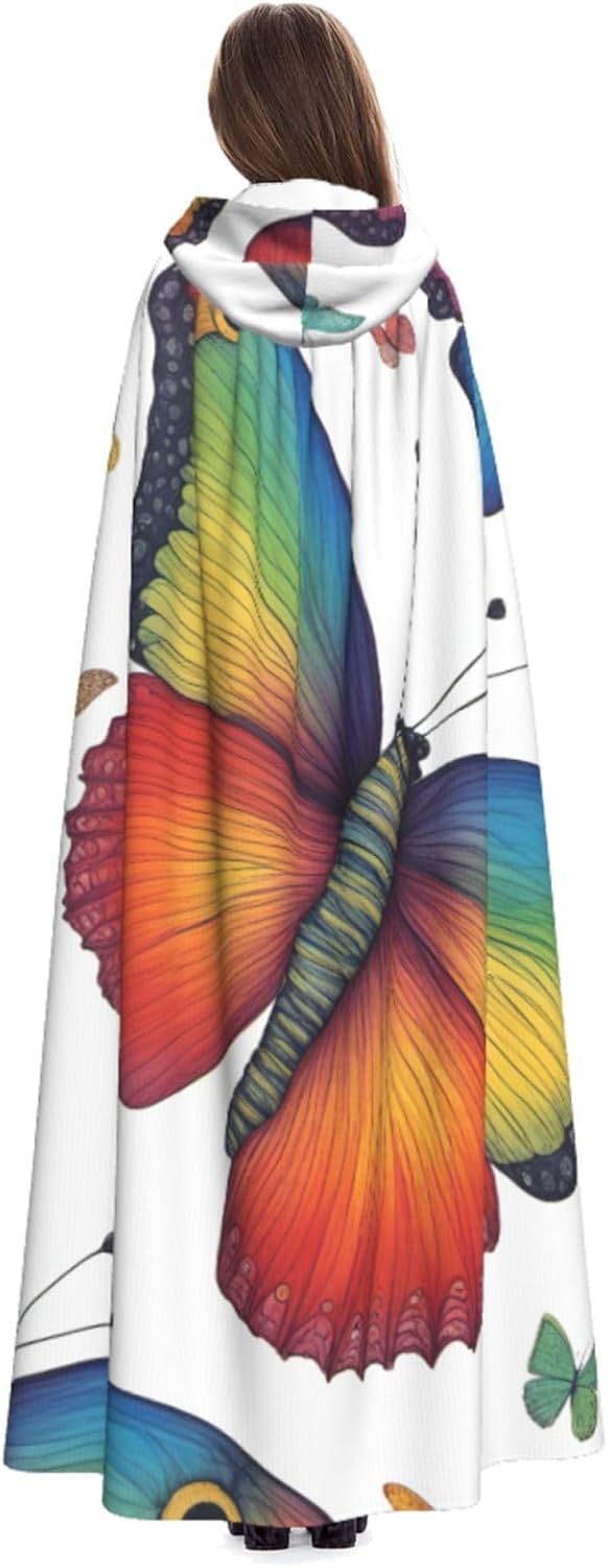 Mantello con cappuccio con stampa arcobaleno e farfalla con cappuccio, un accattivante mantello con cappuccio per adulti per cosplay e Halloween