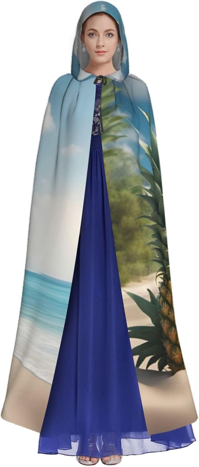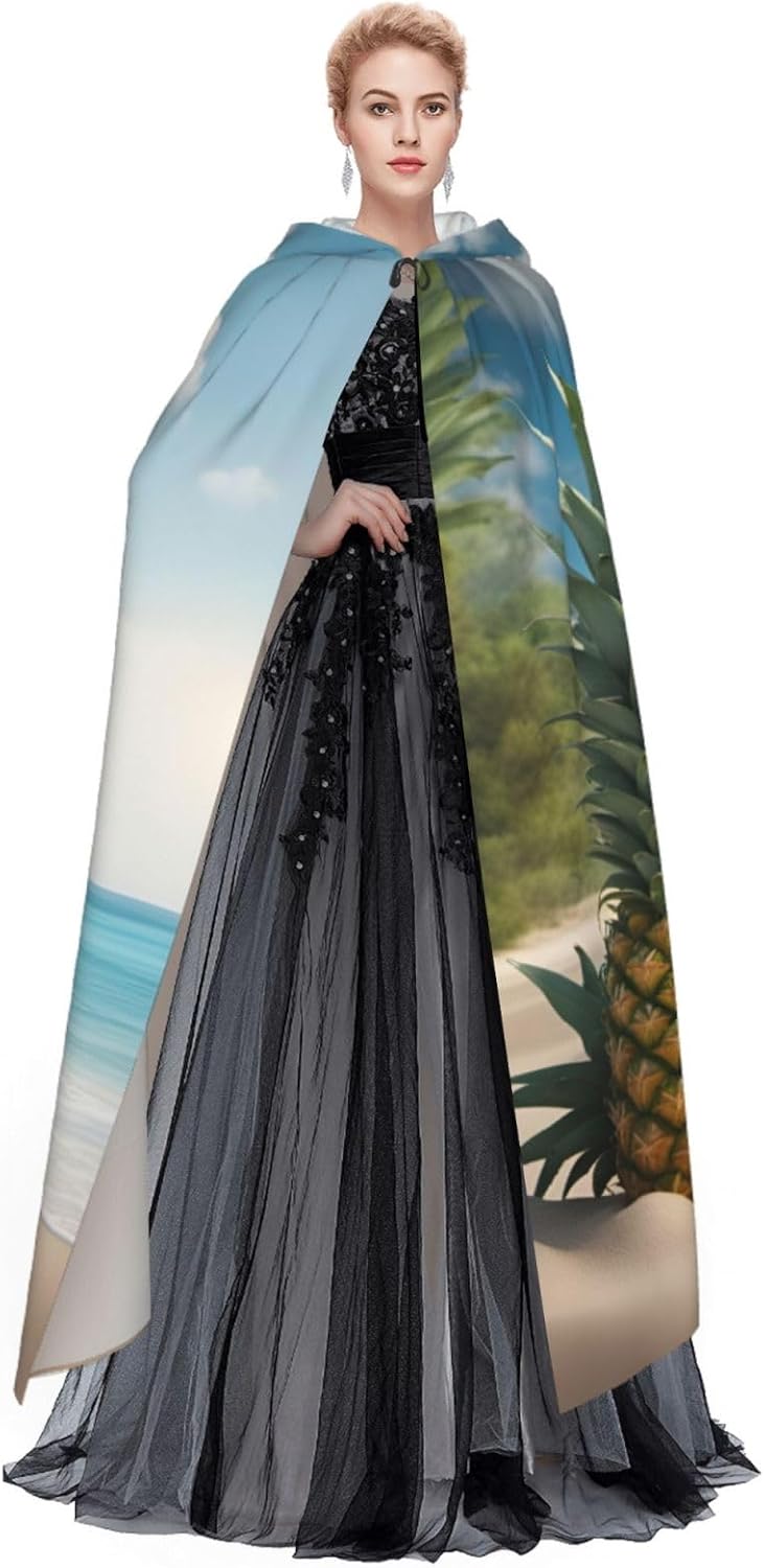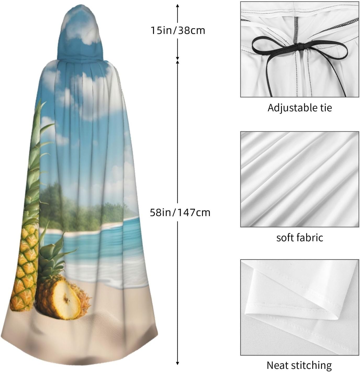 Mantello con cappuccio con stampa di ananas, da spiaggia, con cappuccio, per adulti, per cosplay e Halloween