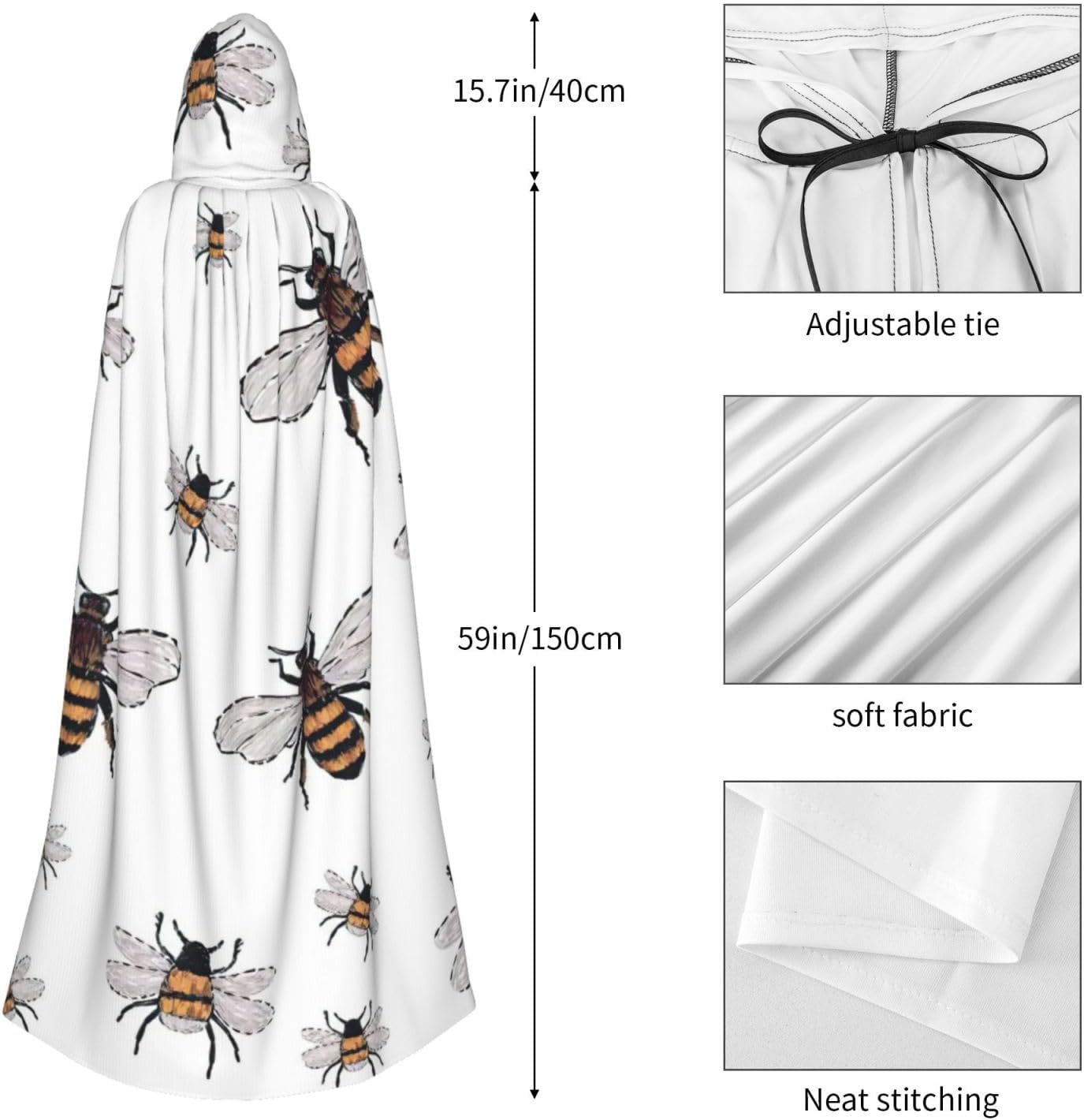 Mantello con cappuccio con stampa di api divertenti per tutti i costumi cosplay unisex decorazione di Halloween forniture di carnevale
