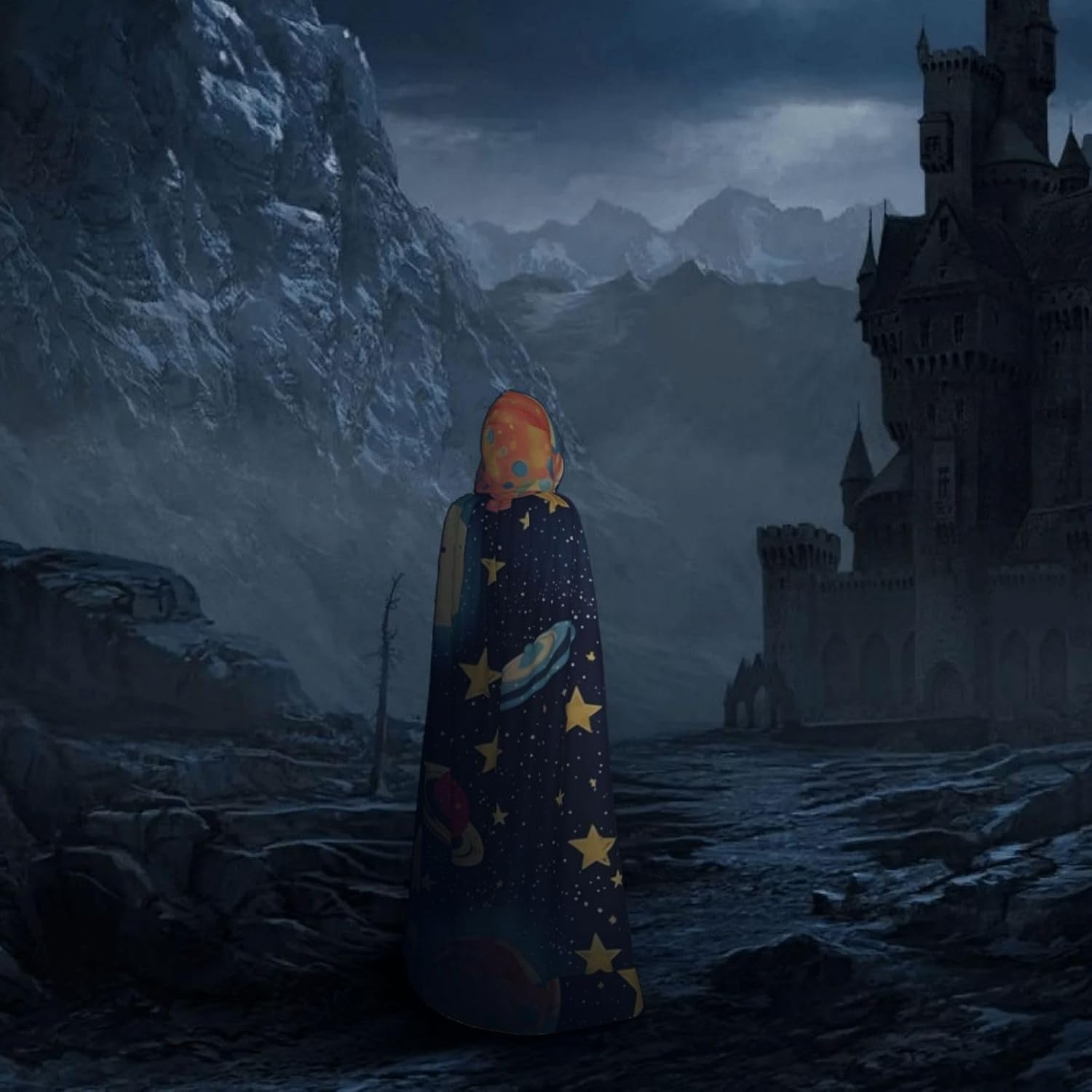 Mantello con cappuccio con stampa di cielo stellato universo spaziale per tutti i costumi cosplay unisex decorazione di Halloween forniture di carnevale