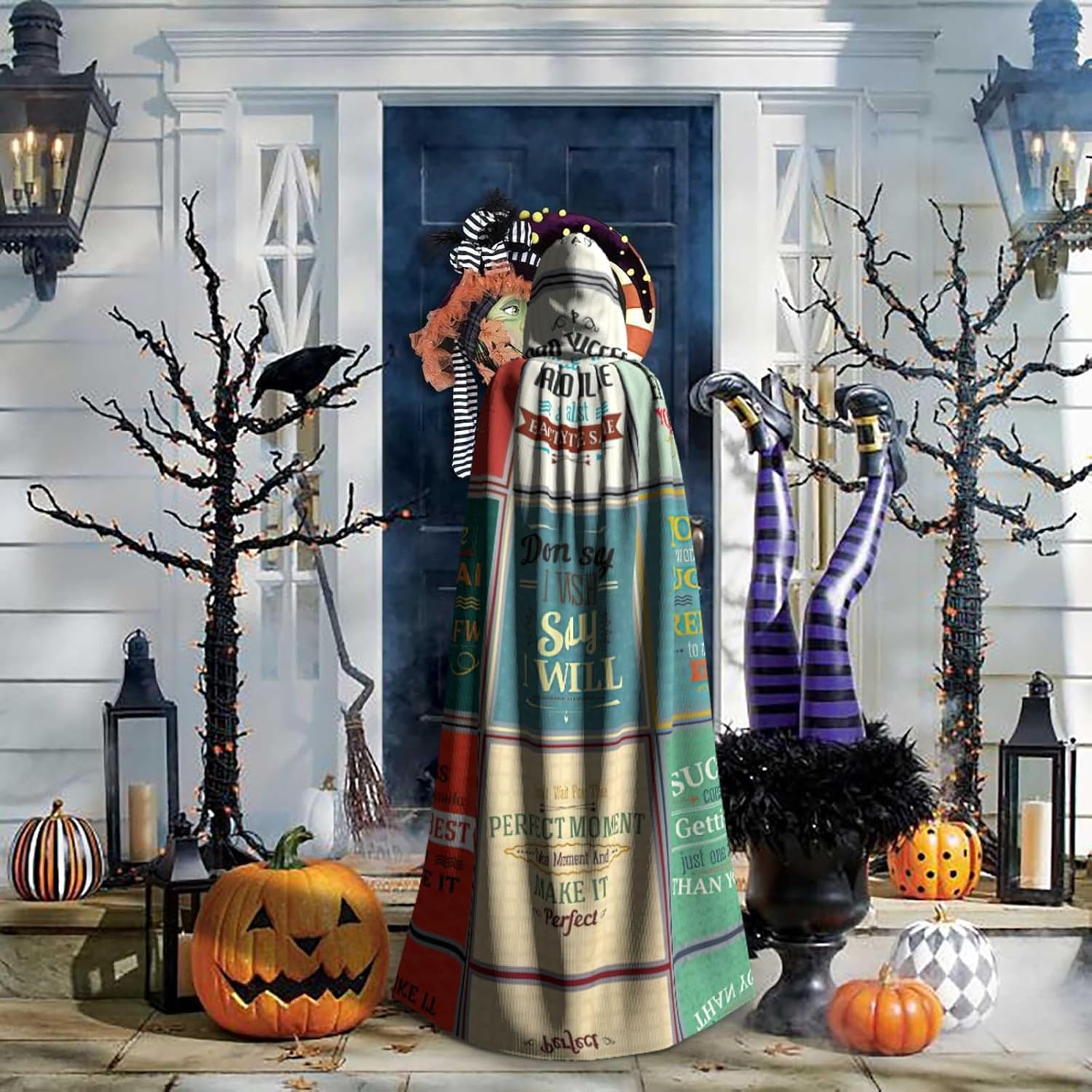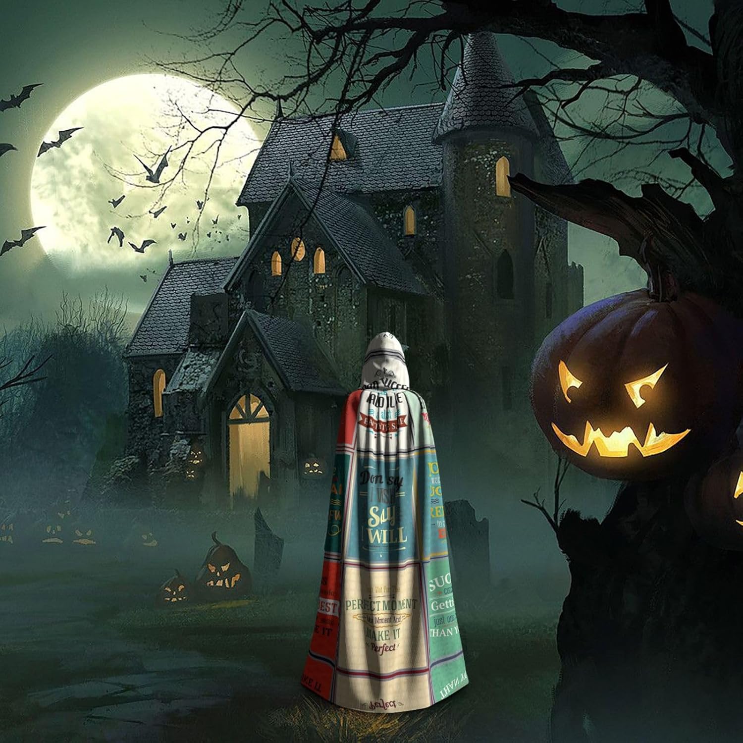 Realizzato in poliestere, questo mantello con stampa di detti è comodo da indossare e senza prurito. Il suo design a tutta lunghezza lo rende una taglia A adatta a tutti per adulti e ragazzi. Distinguiti tra la folla ad Halloween, eventi di gioco di ruolo in costume, feste a tema, o in qualsiasi incontro o carnevale. Con design senza cerniera e colletto annodato, indossabilità è un gioco da ragazzi. Inoltre, è lavabile in lavatrice e facile da mantenere. Abbraccia lo spirito di Halloween con stile con il nostro mantello con cappuccio e fai un aspetto indimenticabile!